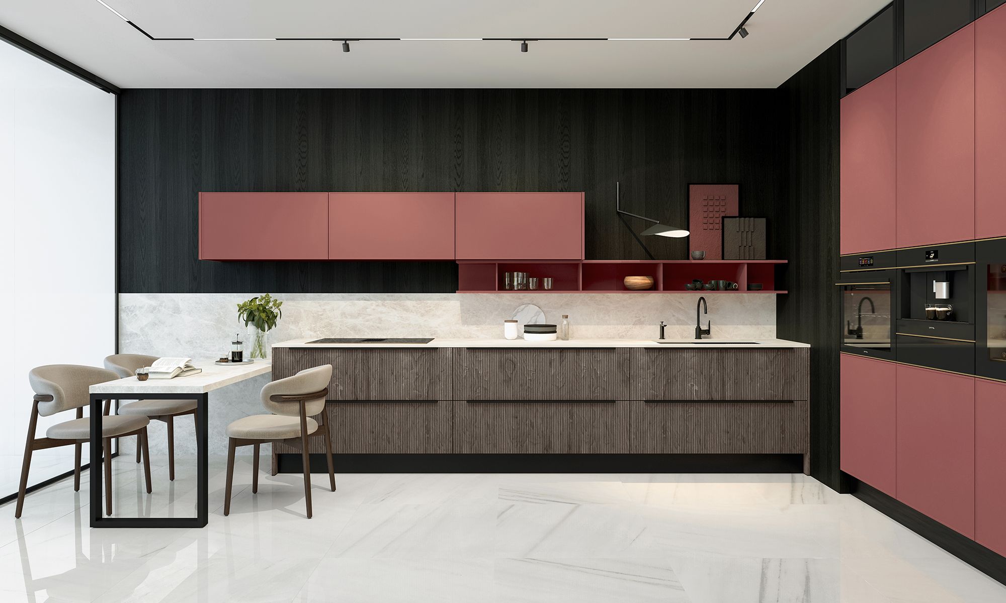 Дизайн кухни подстраивается под темп жизни и паттерны поведения пользователей. В нем все меньше декоративности и все больше функциональности. Например, на смену накладным ручкам пришли новые системы открывания – ручки, интегрированные в фасад. Их форма напоминает букву J, отсюда и название J-ручка. Помимо эргономики решение обеспечивает безопасность: вы не рискуете зацепиться краем одежды, когда несете на стол горячий чайник или ставите на плиту кастрюлю с водой.