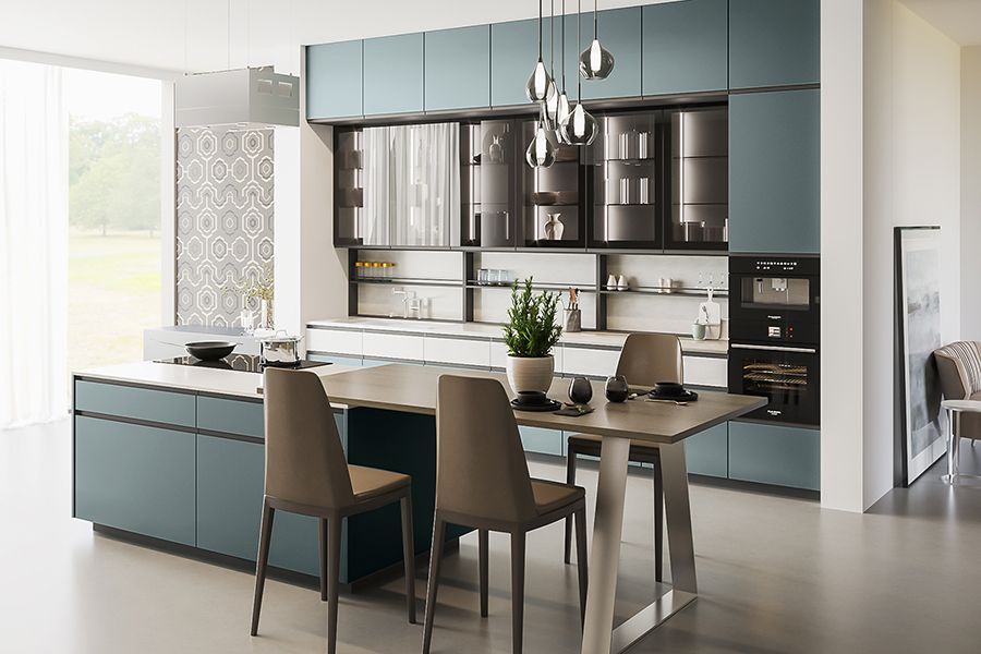 Кухня в современном стиле — это образец продуманной эргономики. Вместо привычной накладной фурнитуры ее фасады оснащаются J-ручкой. Плюсы: