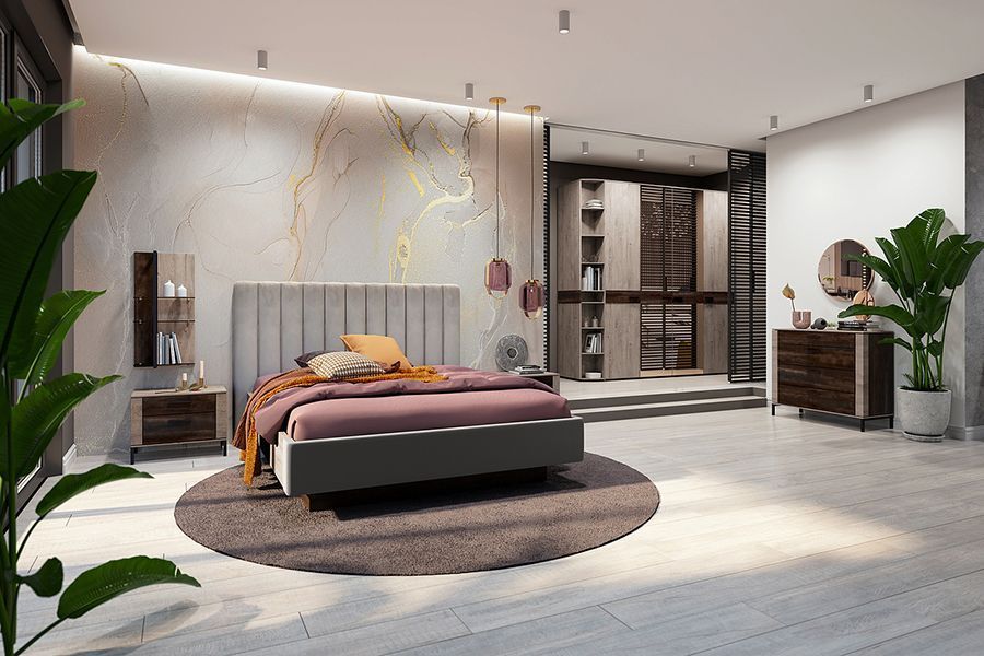 Кровать — центральный объект спальни и определяет атмосферу пространства. Совет тем, кто путается в выборе стиля – условно делите направления на современные и классические. - Современный стиль – это четкие геометрические формы, лаконичность, отсутствие лишнего. Сюда впишутся мягкие кровати-платформы, модели с изголовьями, декорированными вертикальной строчкой или квадратами, каркасные кровати в древесной текстуре. - Неоклассика – элегантность и симметрия. Формы мягкие, углы закругленные. Изголовья, декорированные каретной стяжкой или фигурным кантом, древесные текстуры без контрастного рисунка волокон, эмаль, текстура мрамора. Рекомендации по выбору оттенков: - база современности стиля — нейтральные тона (графит, бежевый, белый) и древесные текстуры. Чтобы создать акцент интерьера, можно выбрать что-то посмелее. Например, изумрудный, винный или охру. - неоклассика – это приглушенная палитра (пудровый, цвет шампанского, оливковый, серо-синий). Пастельные оттенки создают легкую, воздушную атмосферу.