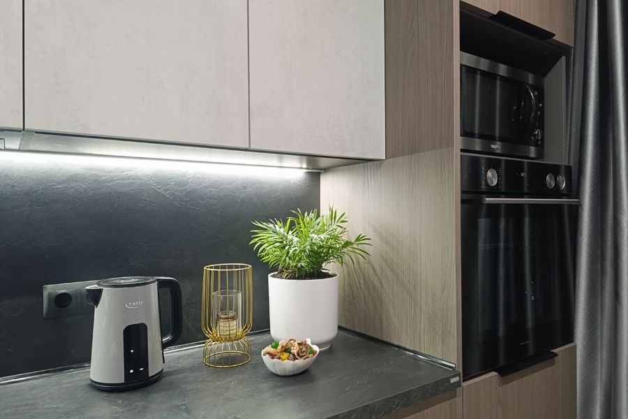 - отдельно стоящая бытовая техника не вписывается в композицию.