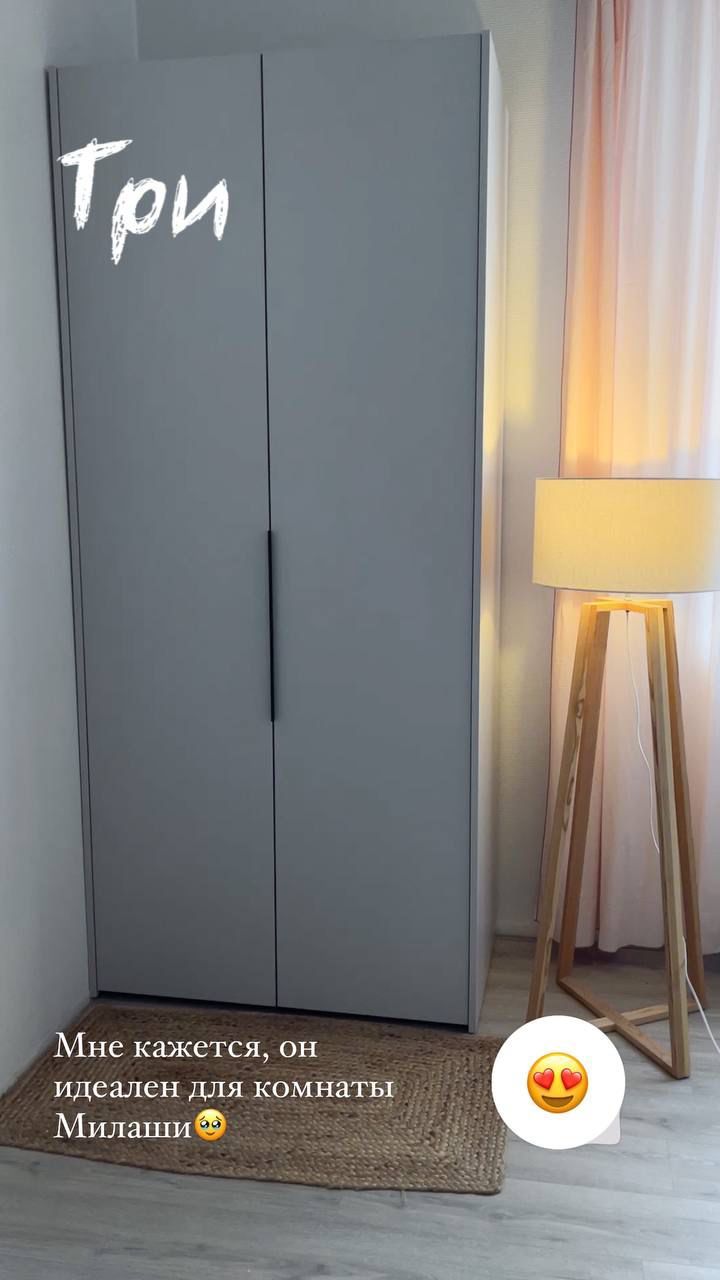 Выбирали между двухдверными шкафами в оттенках топленого молока. И вот такие варианты понравились маме.
