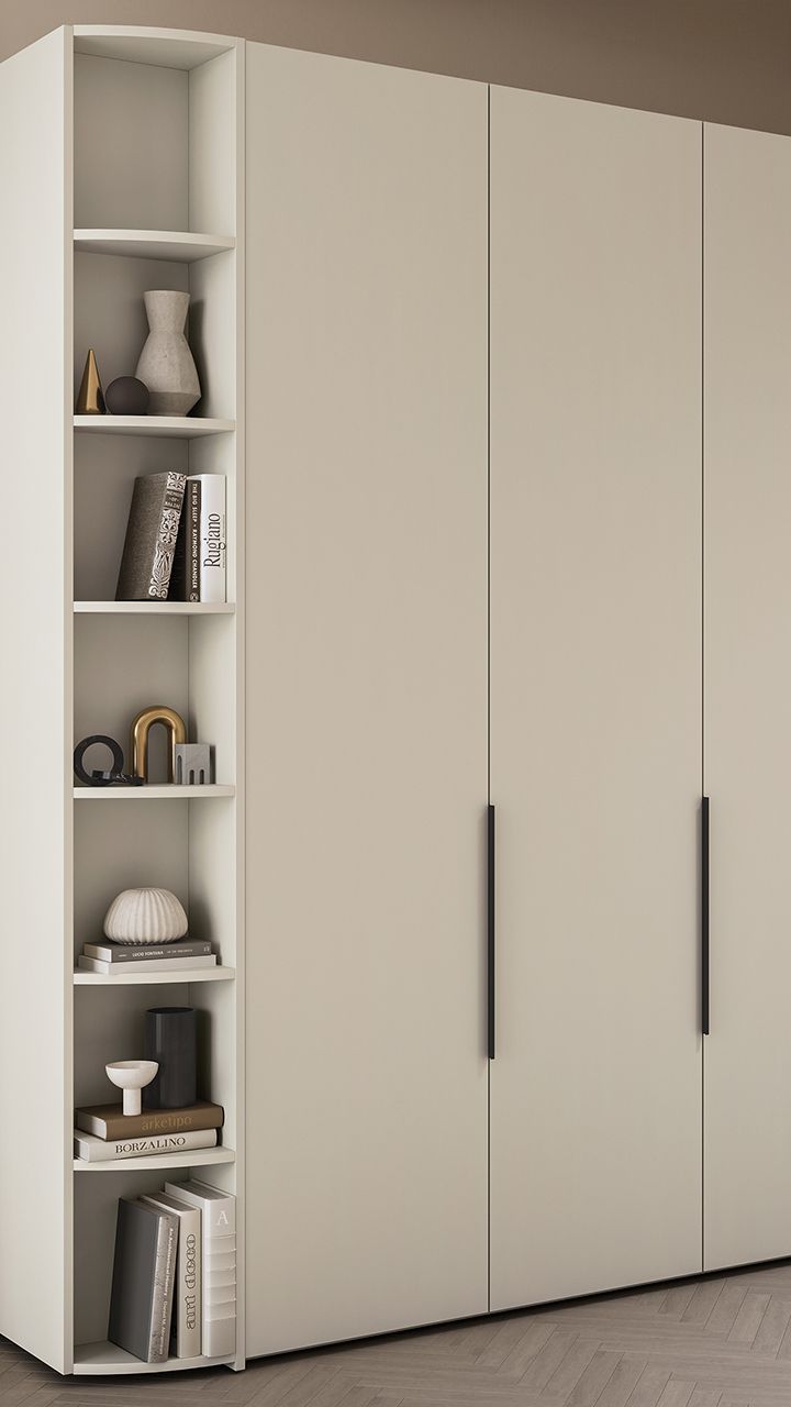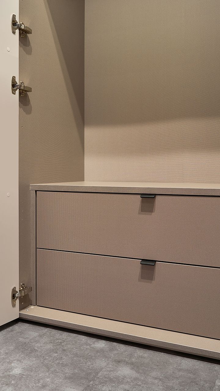 Шкаф из коллекции ARTA с отделкой матовым покрытием Кашемир. Его фасады не бликуют и очень приятны на ощупь. К тому же, благодаря специальному защитному слою с них легко удаляются загрязнения.