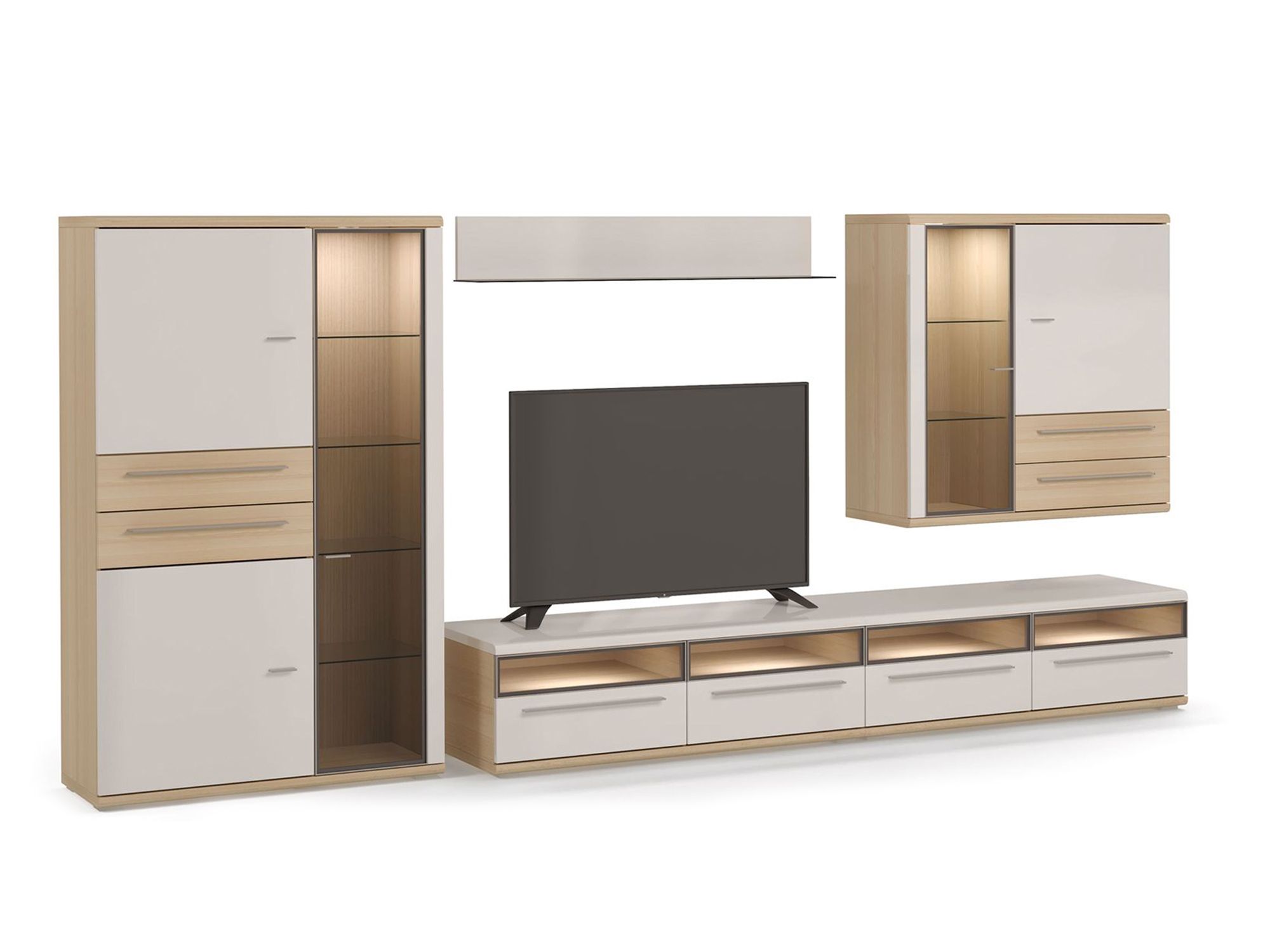 Сочетание светлой древесной текстуры и белого цвета, характерное для скандинавского интерьерного дизайна, делает композицию светлой и легкой и открывает широкие возможности для декорирования. Дизайнерская подсветка включена в стоимость. Ящики оснащены направляющими Quadro, обеспечивающими плавность хода. Регулируемые опоры позволяют компенсировать неровности пола в диапазоне 10-12 мм.