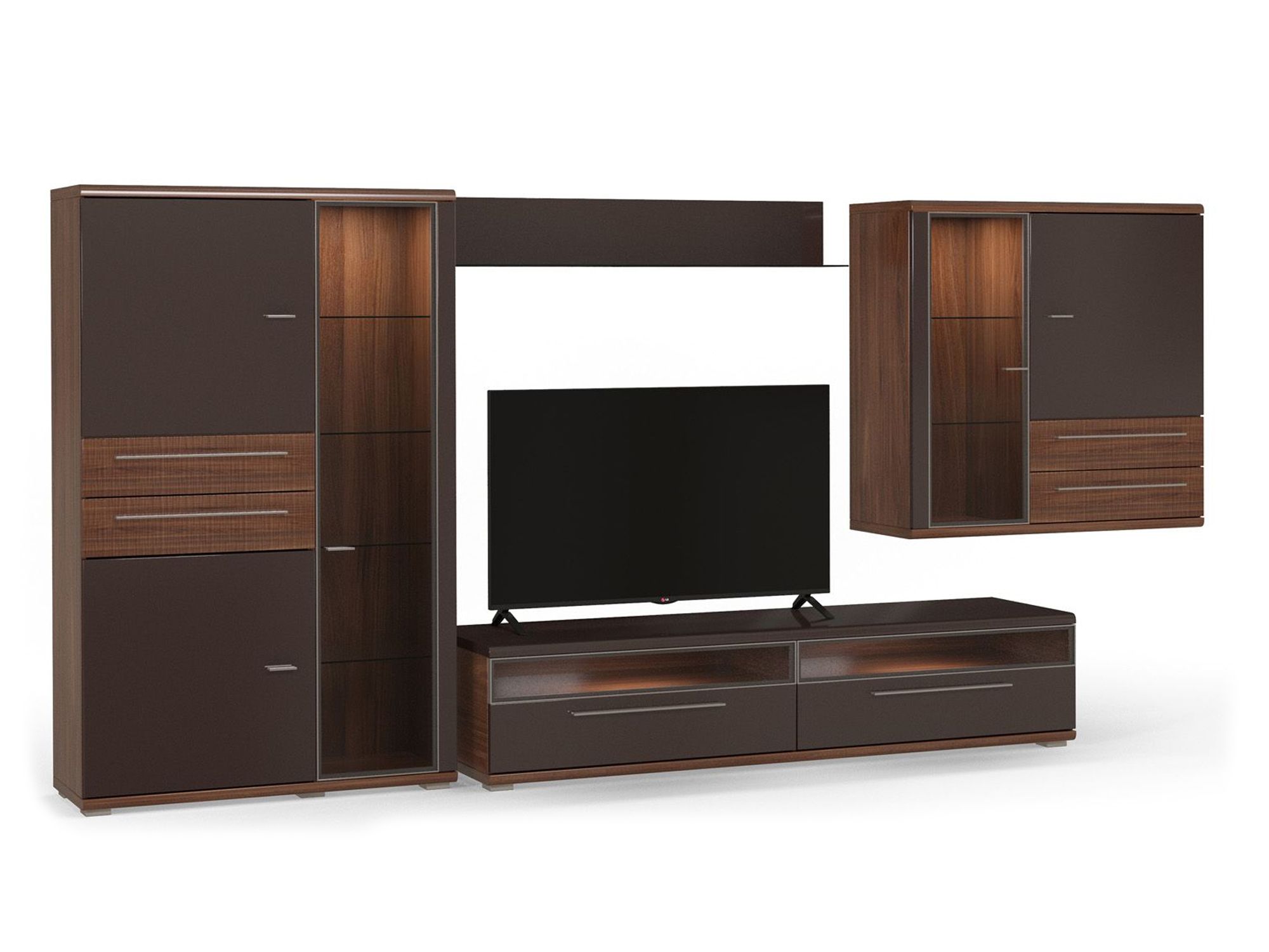 Теплая природная текстура вяза и глянец модного оттенка придают композиции особый стиль. Неповторимый уют в гостиной создает встроенная подсветка (включена в комплект). Продуманный размерный ряд коллекции позволяет создавать интерьеры с выразительным характером для помещений различной площади и конфигурации.