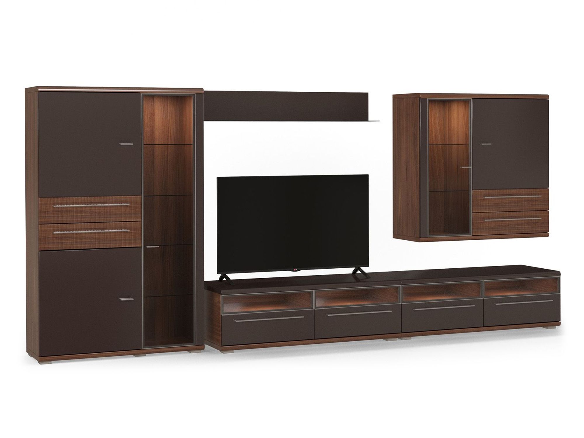 Теплая природная текстура вяза и глянец модного оттенка придают композиции особый стиль. Неповторимый уют в гостиной создает встроенная подсветка (включена в комплект). Продуманный размерный ряд коллекции позволяет создавать интерьеры с выразительным характером для помещений различной площади и конфигурации.