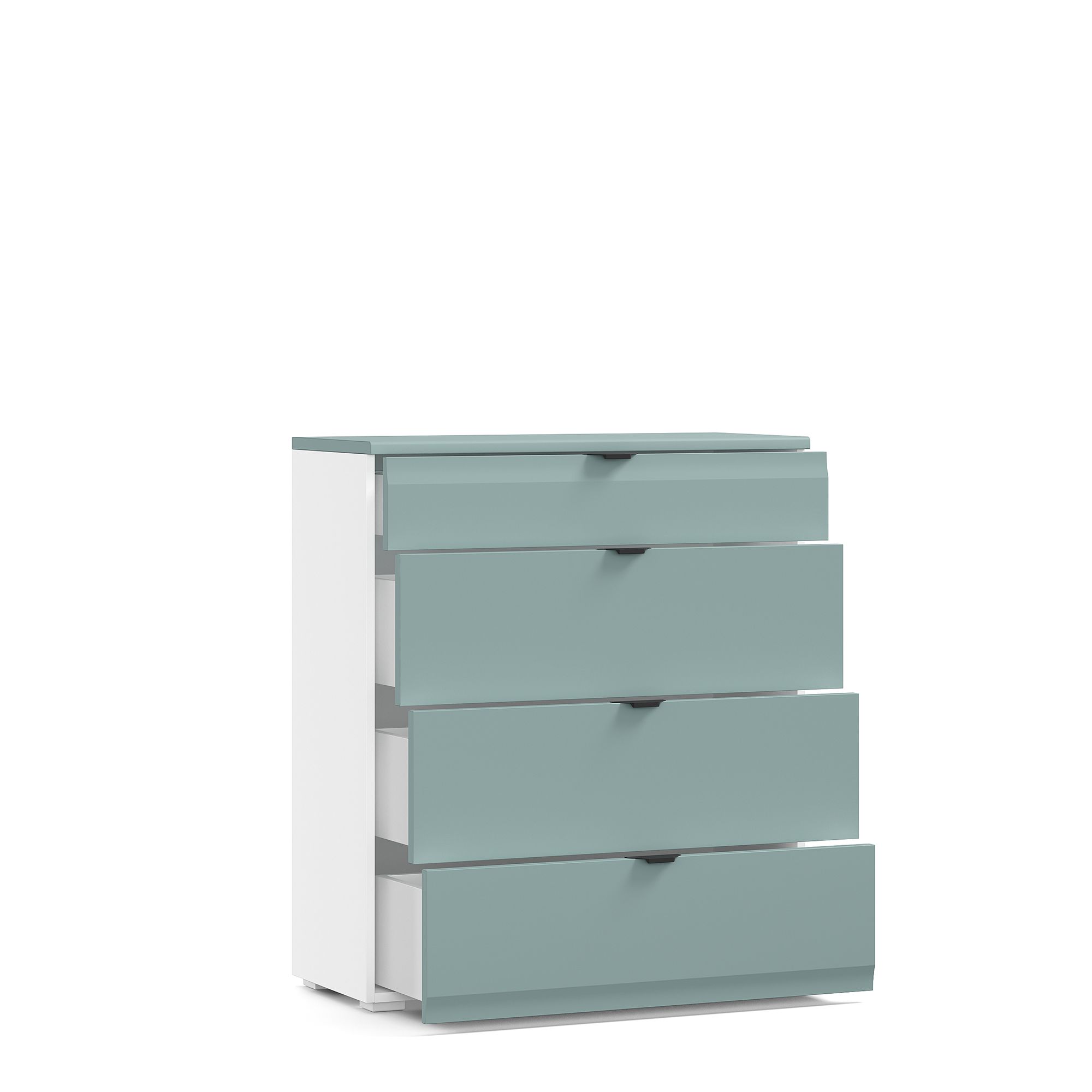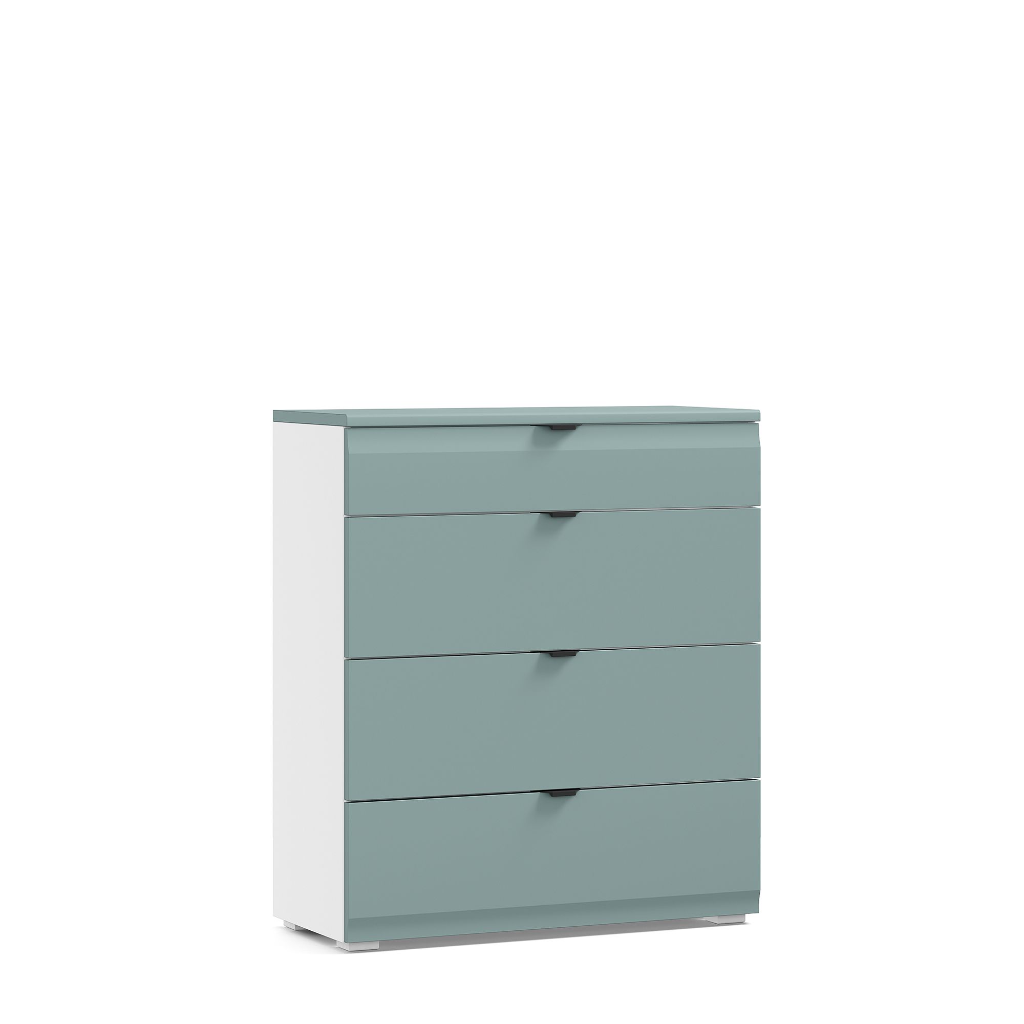 Вместительный комод Turin, оснащенный четырьмя выдвижными ящиками, может использоваться как отдельно, так и в композиции со стеллажом, который может иметь как правое, так и левое исполнение. На выбор предлагается несколько вариантов ручек и опор, благодаря чему можно придать мебели индивидуальный стиль.