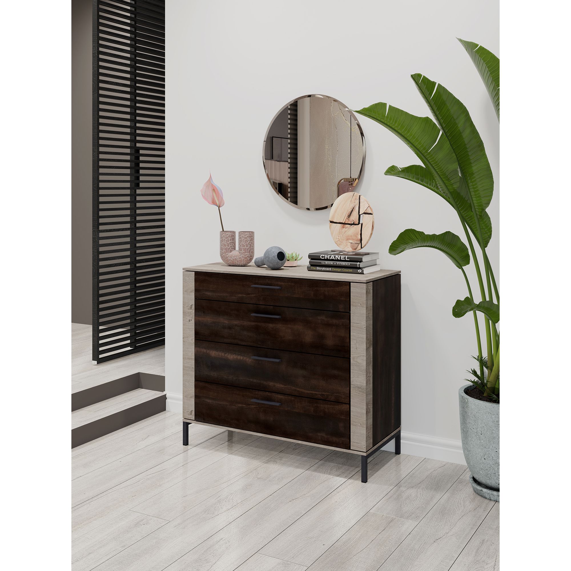 Четыре выдвижных ящика комода BOSTON оснащены направляющими скрытого крепления, обеспечивающими плавное закрывание. Направляющие рассчитаны на нагрузку до 25 кг, что гарантирует большую нагрузочную способность ящика.