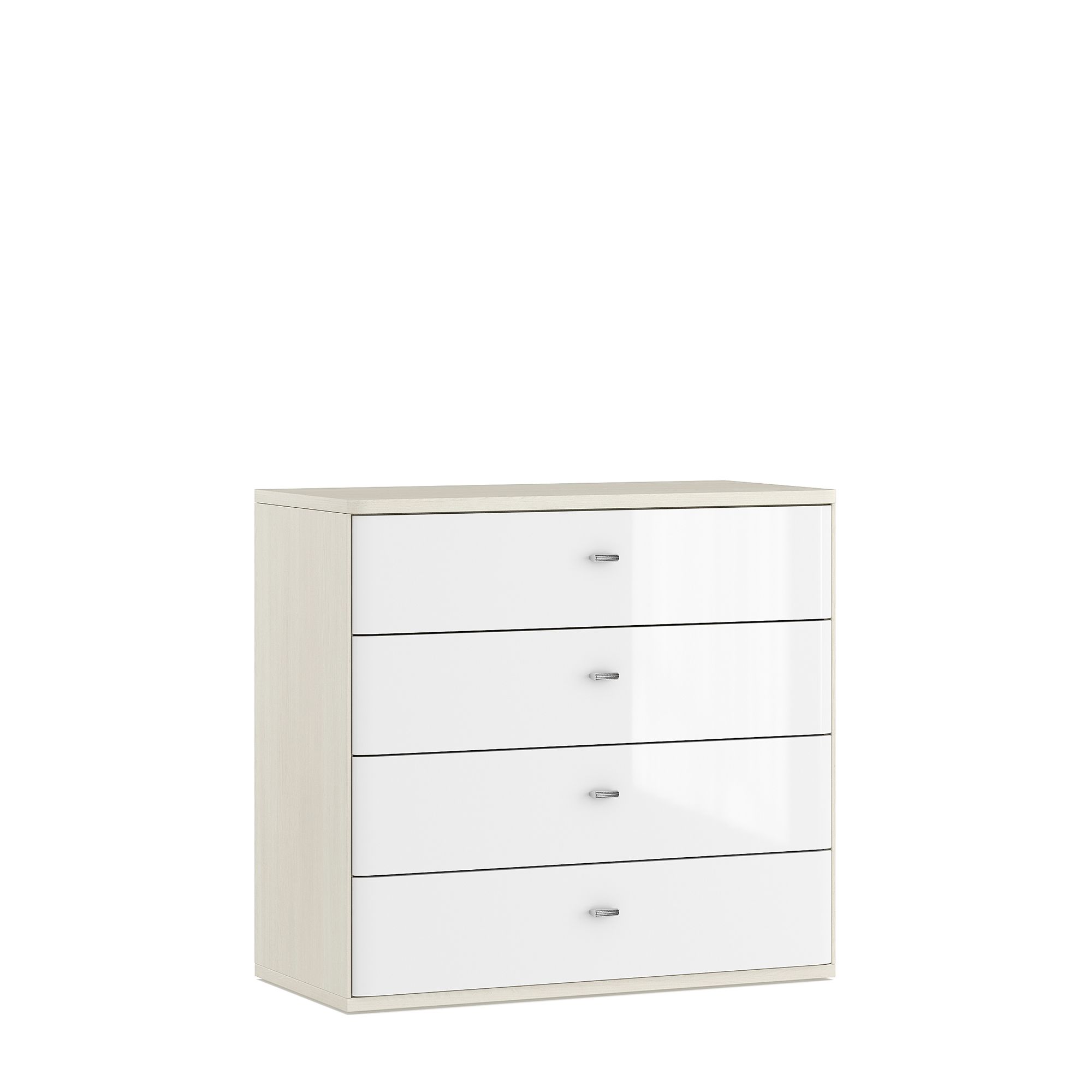 Вместительный комод ELEGANTE оснащен четырьмя выдвижными ящиками, которые открываются и закрываются плавно и бесшумно благодаря надежным механизмам европейского производства, рассчитанным на весь срок службы мебели.