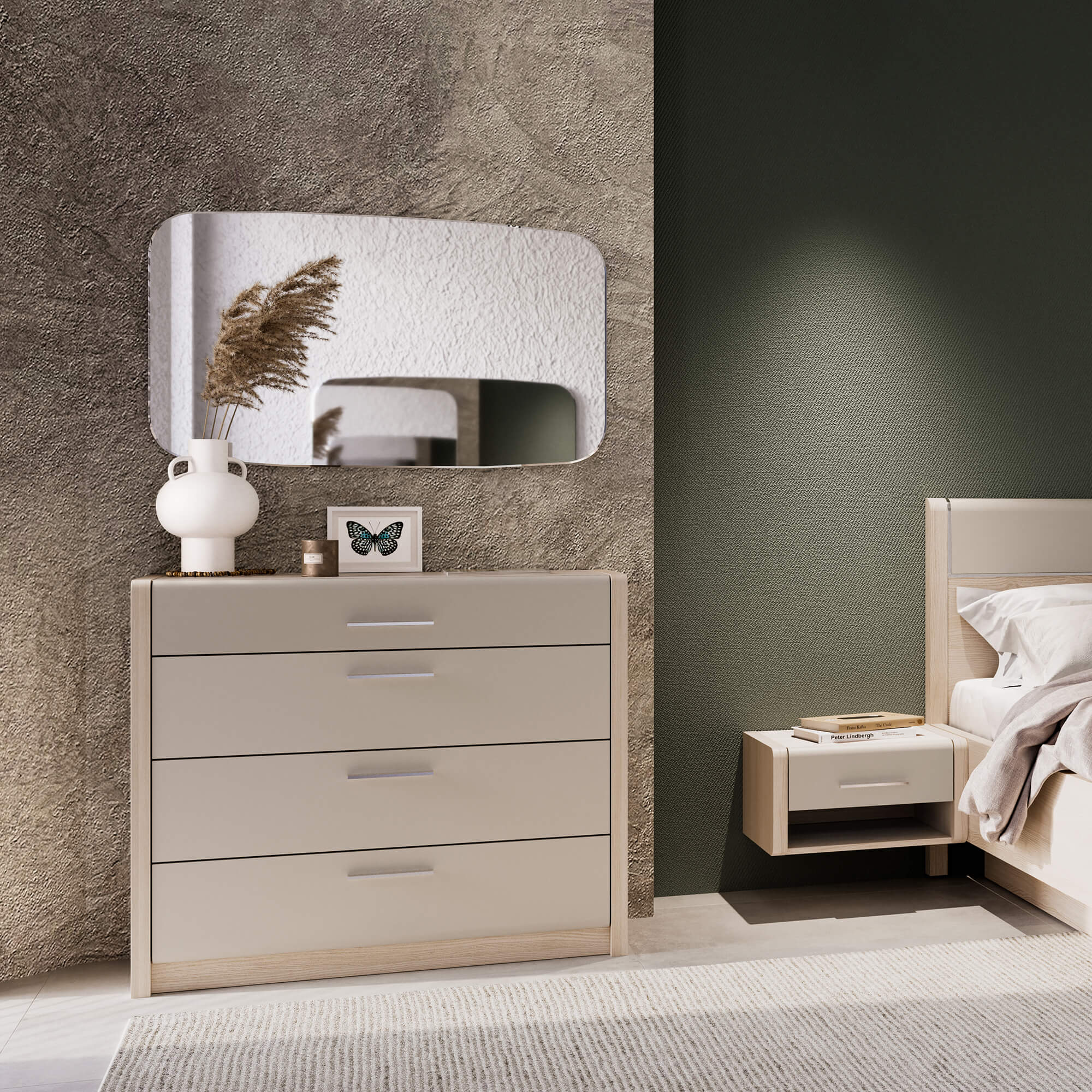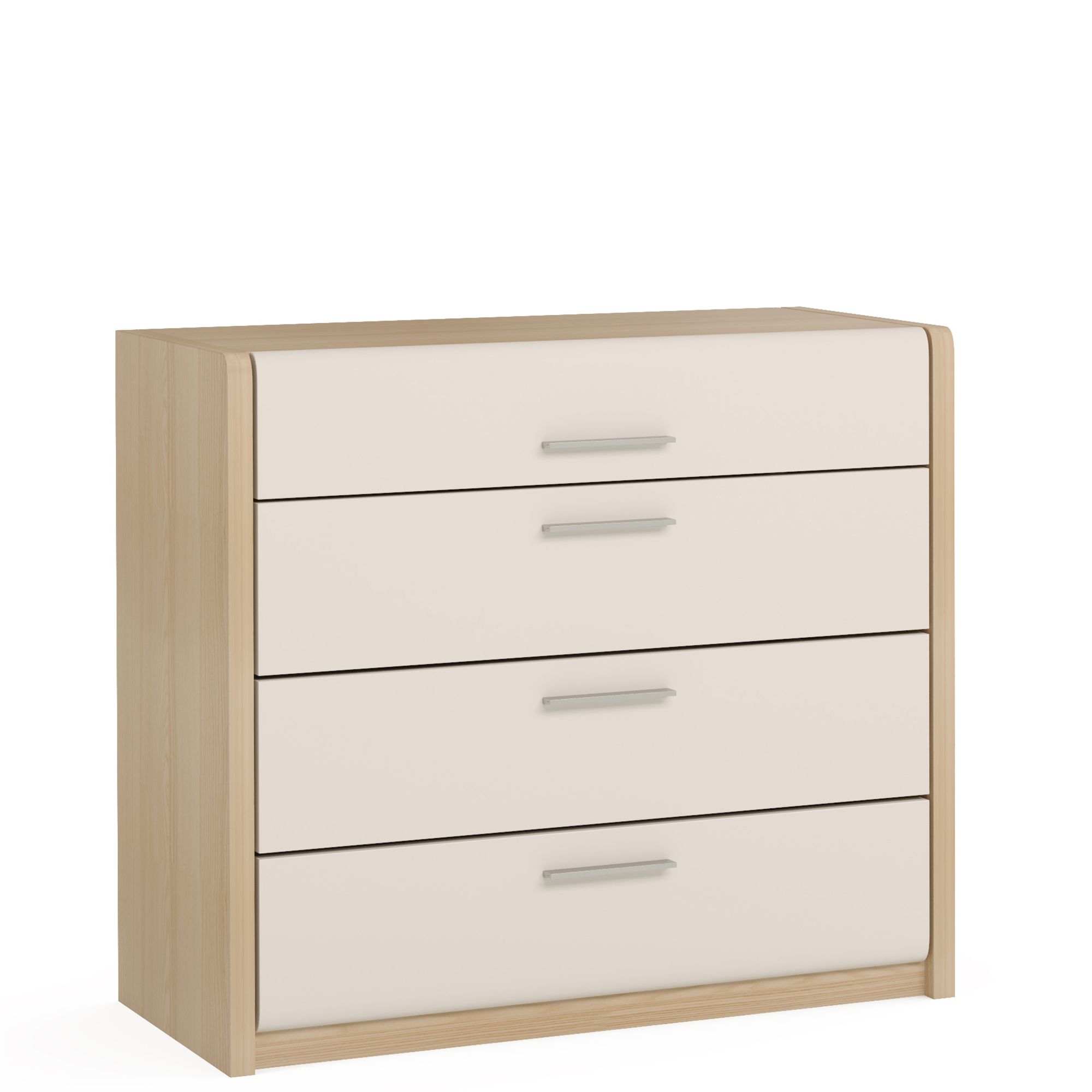 Вместительный комод ESTE оснащен четырьмя выдвижными ящиками, которые открываются и закрываются плавно и бесшумно благодаря надежным механизмам европейского производства, рассчитанным на весь срок службы мебели.