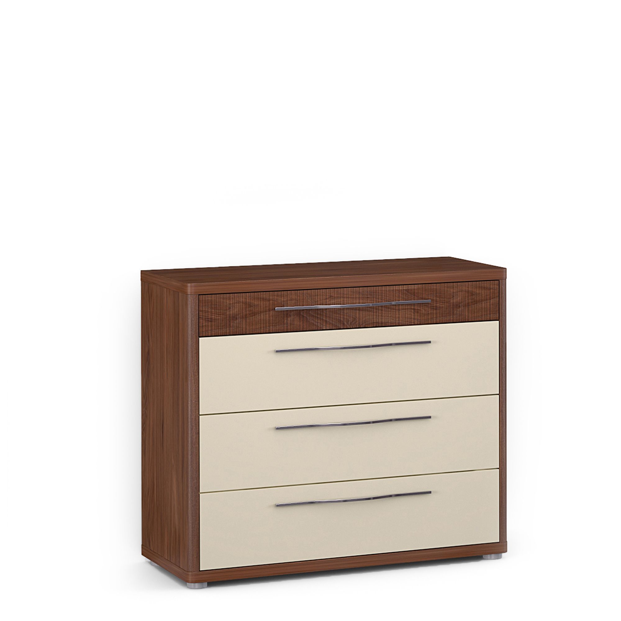 Фасады вместительного комода SAVONA с четырьмя выдвижными ящиками декорованы глянцем и эксклюзивным тиснением. Благодаря качественным направляющим европейского производства ящики открываются и закрываются плавно и бесшумно. Металлические ручки с гальваническим покрытием сохраняют безупречный внешний вид на протяжении всего срока службы.