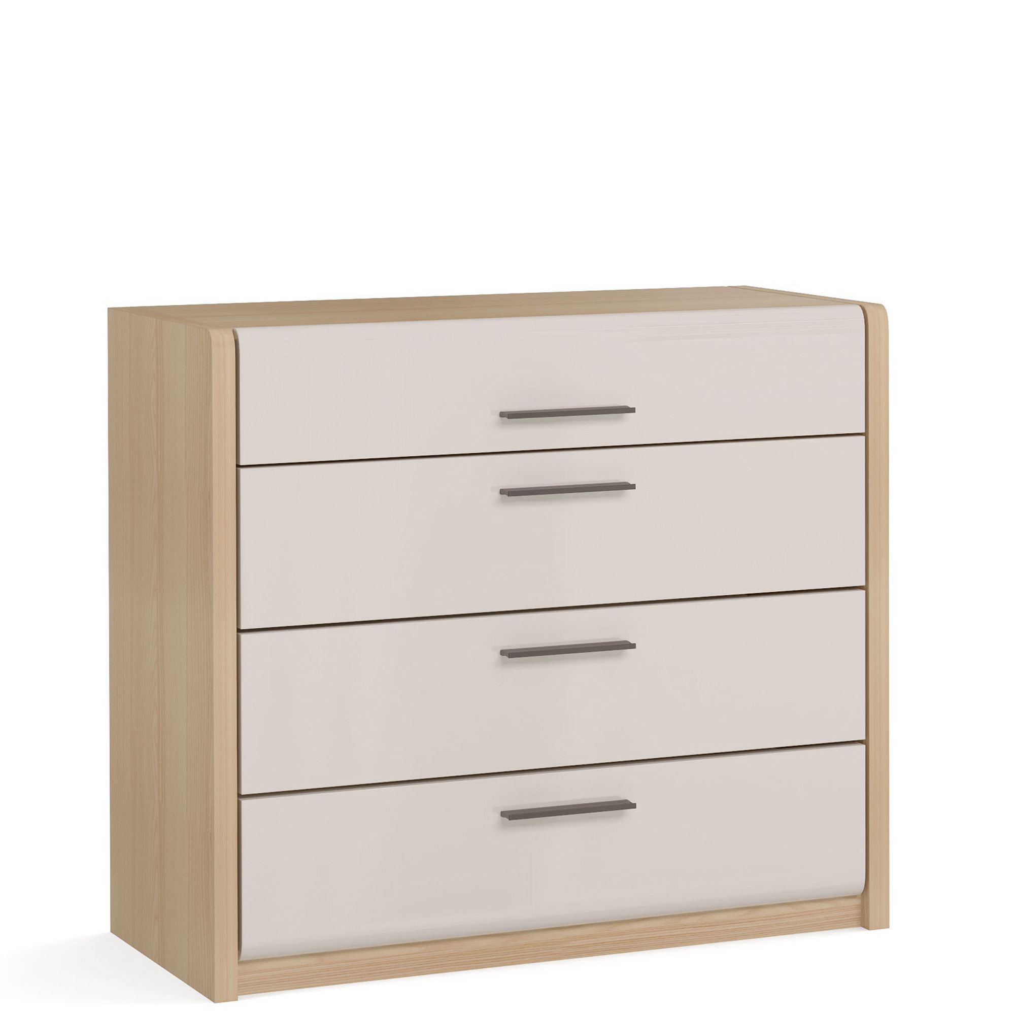 Вместительный комод ESTE оснащен четырьмя выдвижными ящиками, которые открываются и закрываются плавно и бесшумно благодаря надежным механизмам европейского производства, рассчитанным на весь срок службы мебели.