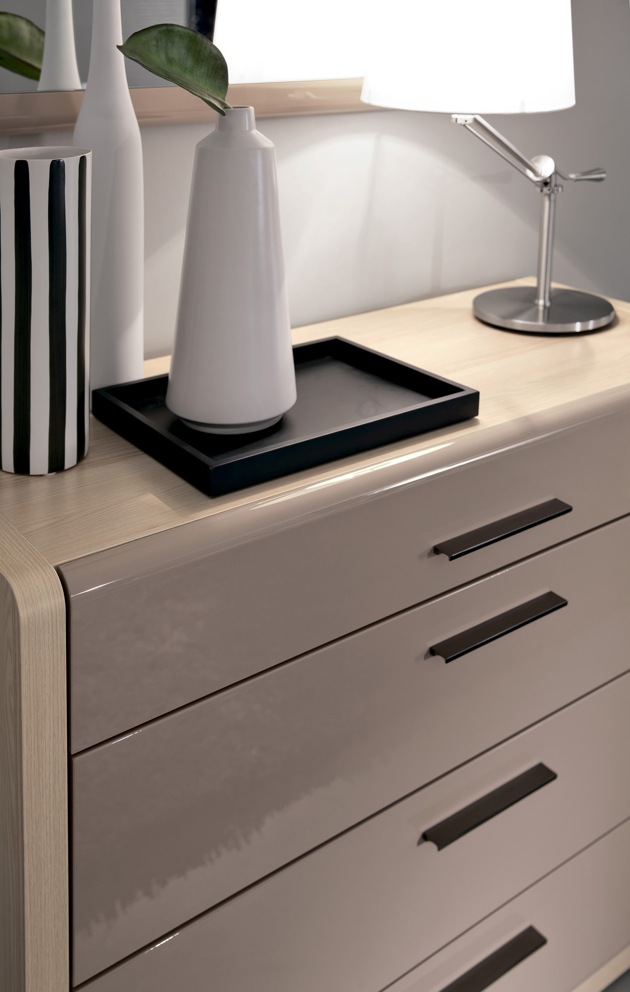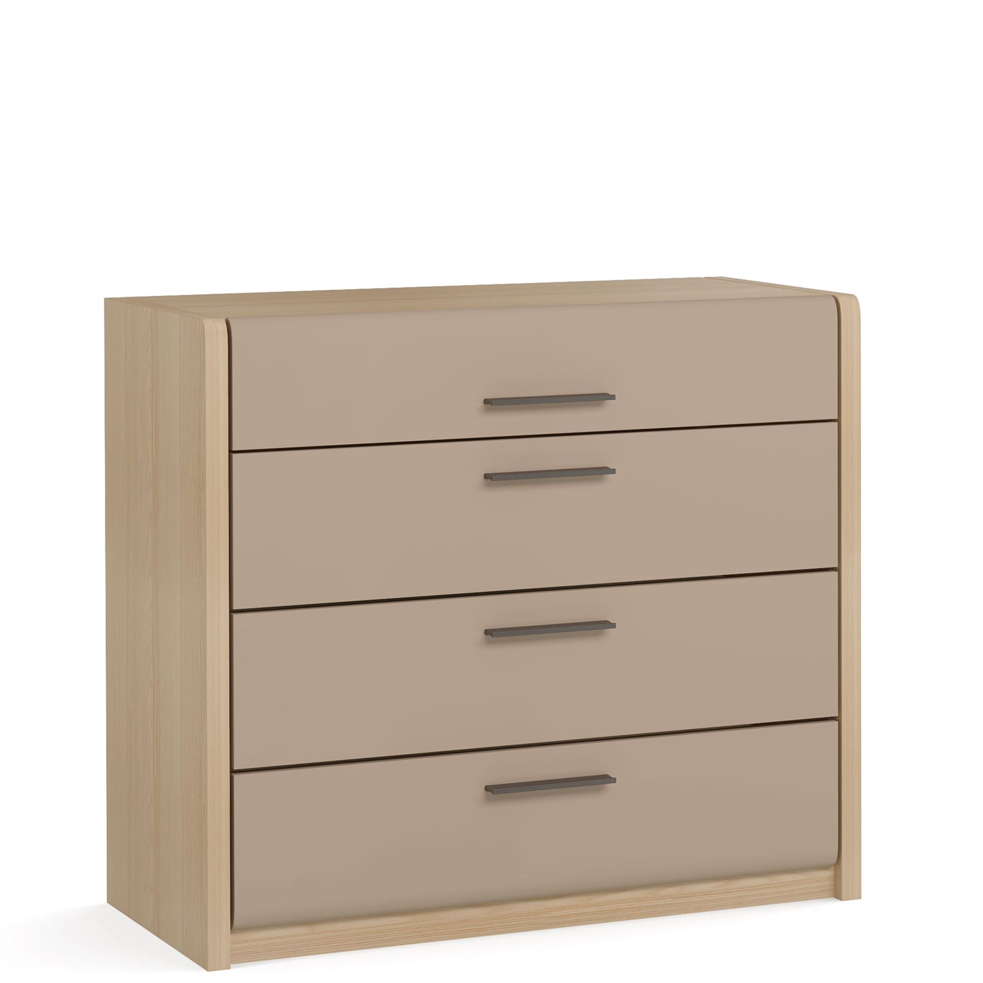 Вместительный комод ESTE оснащен четырьмя выдвижными ящиками, которые открываются и закрываются плавно и бесшумно благодаря надежным механизмам европейского производства, рассчитанным на весь срок службы мебели.