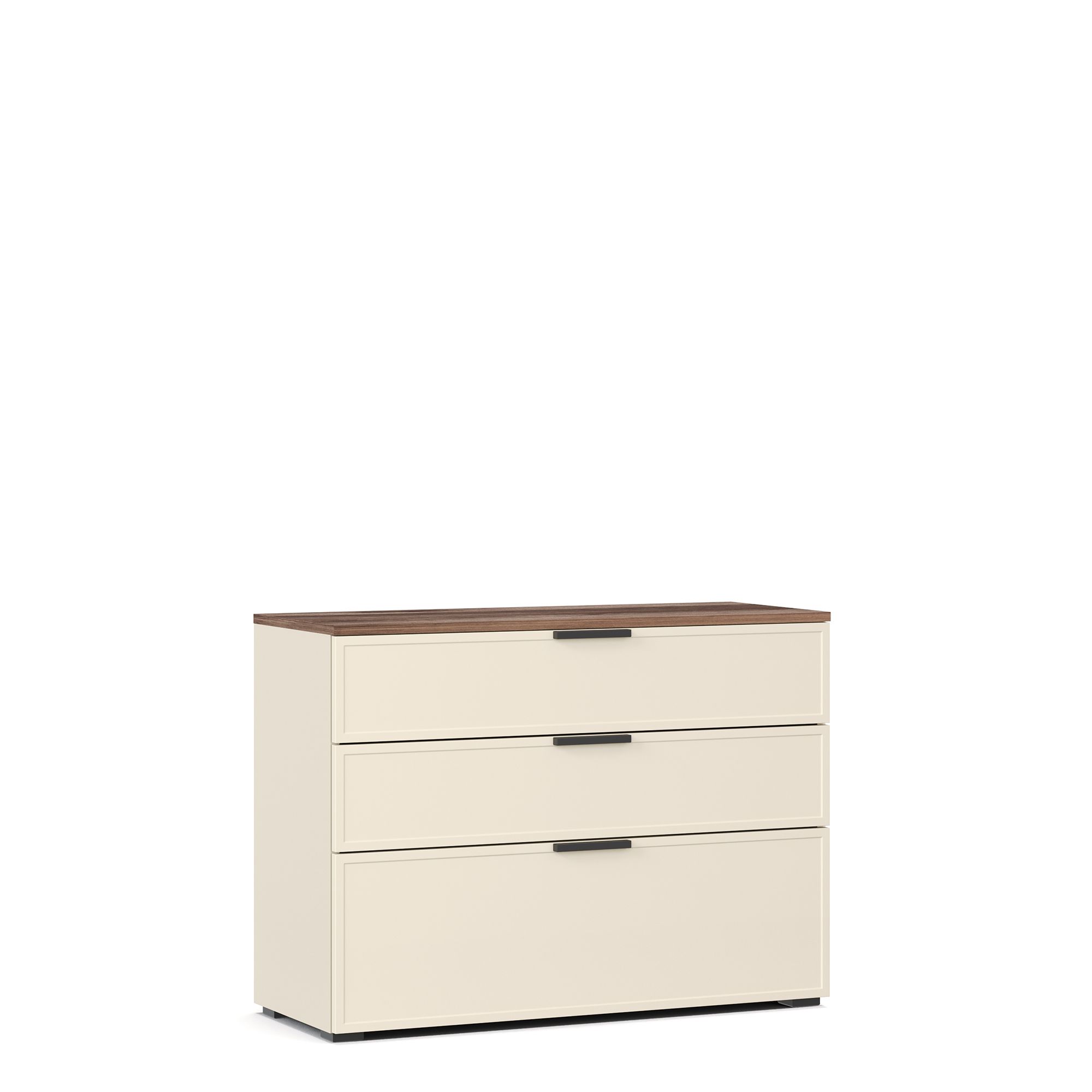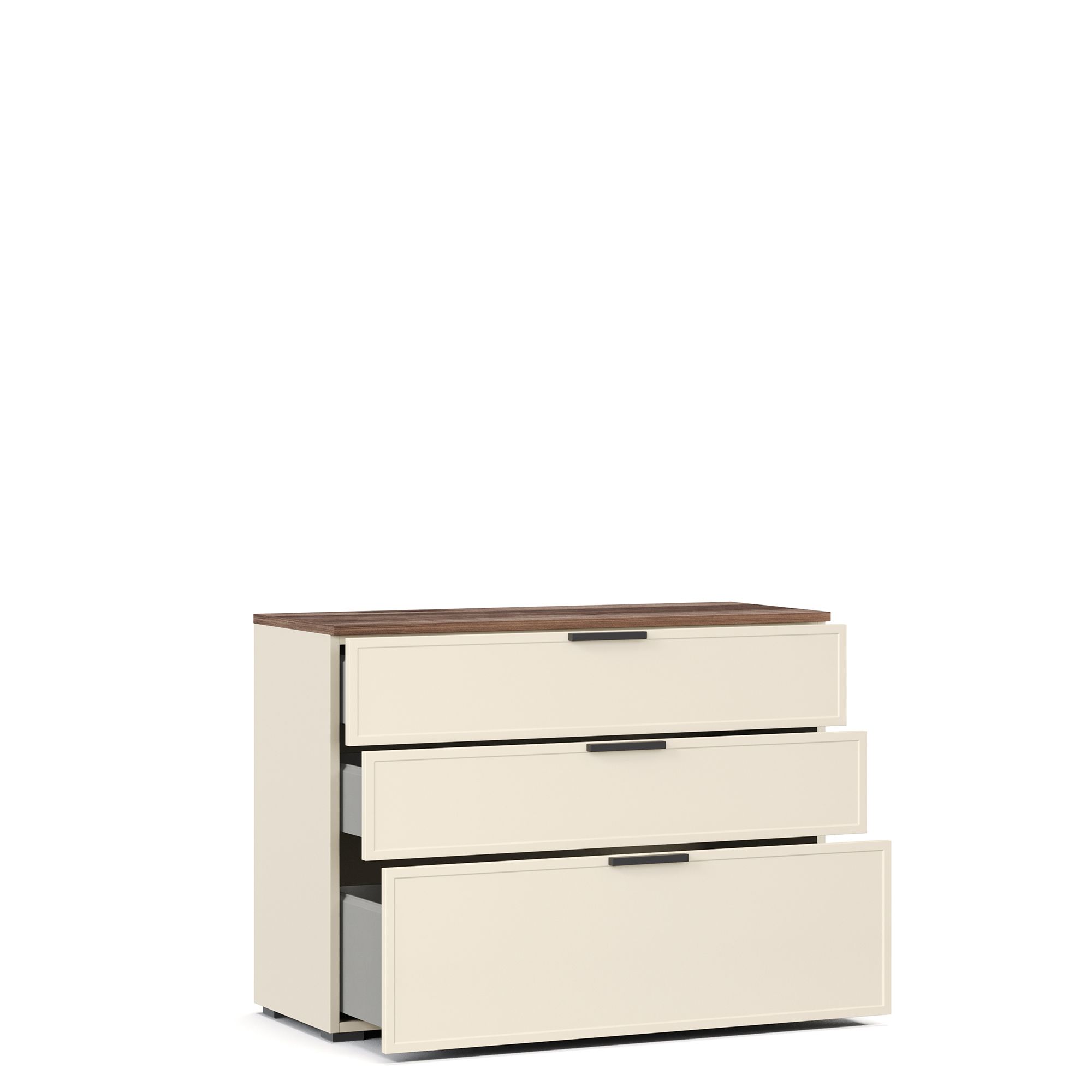 Комод NAPOLI с крышкой в отделке древесной текстурой оснащен тремя выдвижными ящиками, фасады которых декорированы тонкой рамкой. Внутренняя отделка ящиков выполнена в текстуре Шенилл. В качестве опции предлагается установка комода на опоры высотой 12 см (заказываются отдельно).