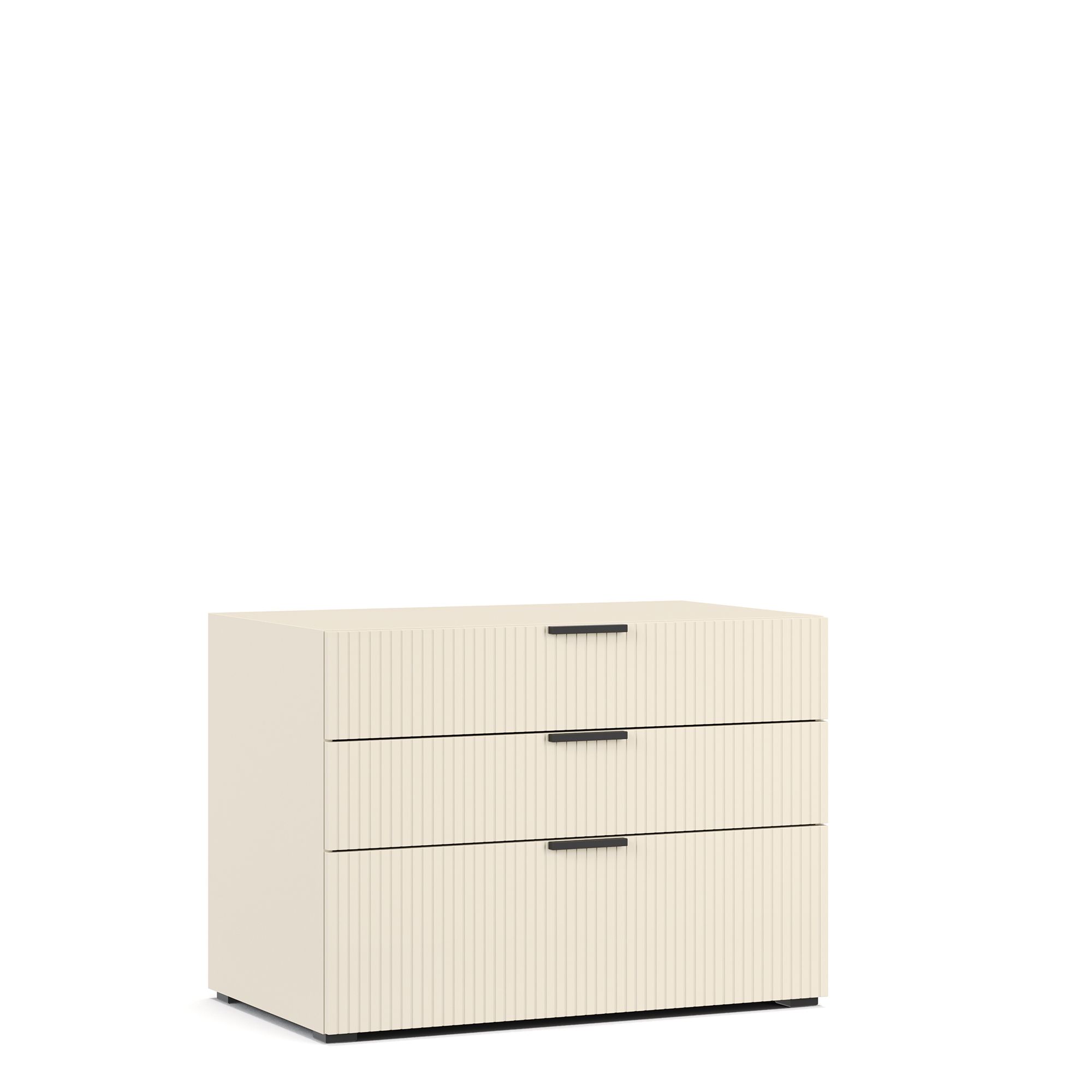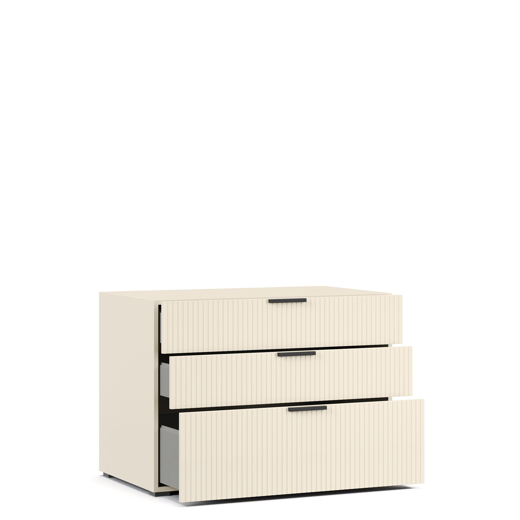 Комод NAPOLI оснащен тремя выдвижными ящиками в отделке вертикальной фрезеровкой. Внутренняя отделка ящиков выполнена в текстуре Шенилл. В качестве опции предлагается возможность установки комода на опоры высотой 12 см (заказываются отдельно).