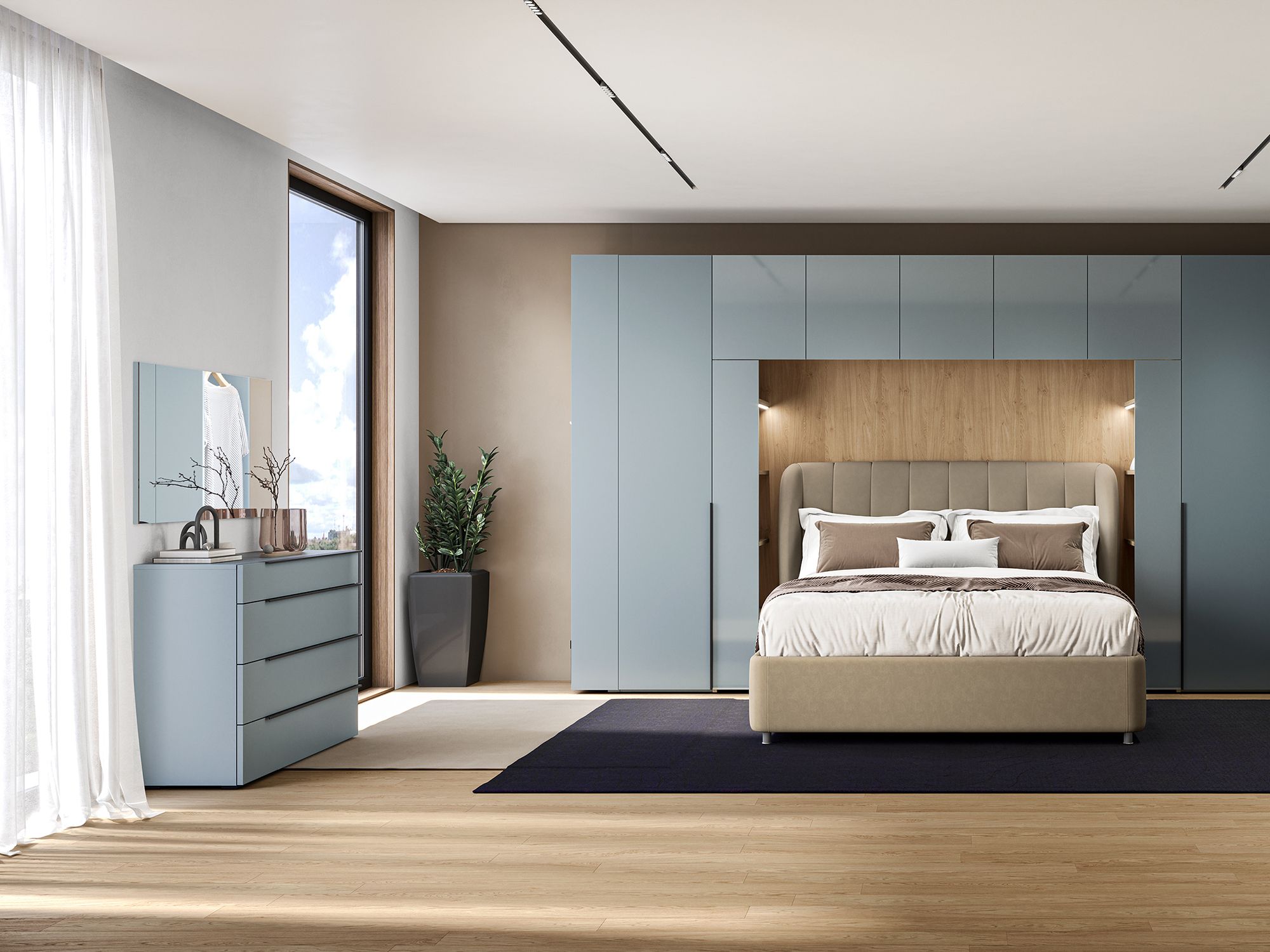 Коллекция включает мебель для спальни, гостиной, прихожей и рабочего кабинета, что обеспечивает возможность оформить квартиру в едином стиле или комбинировать в одном помещении элементы различных жилых зон. Дизайн с использованием модулей различной глубины, переходных модулей и антресолей позволяет осуществить плавный переход из одной ассортиментной группы в другую с сохранением преемственности и композиционной цельности.