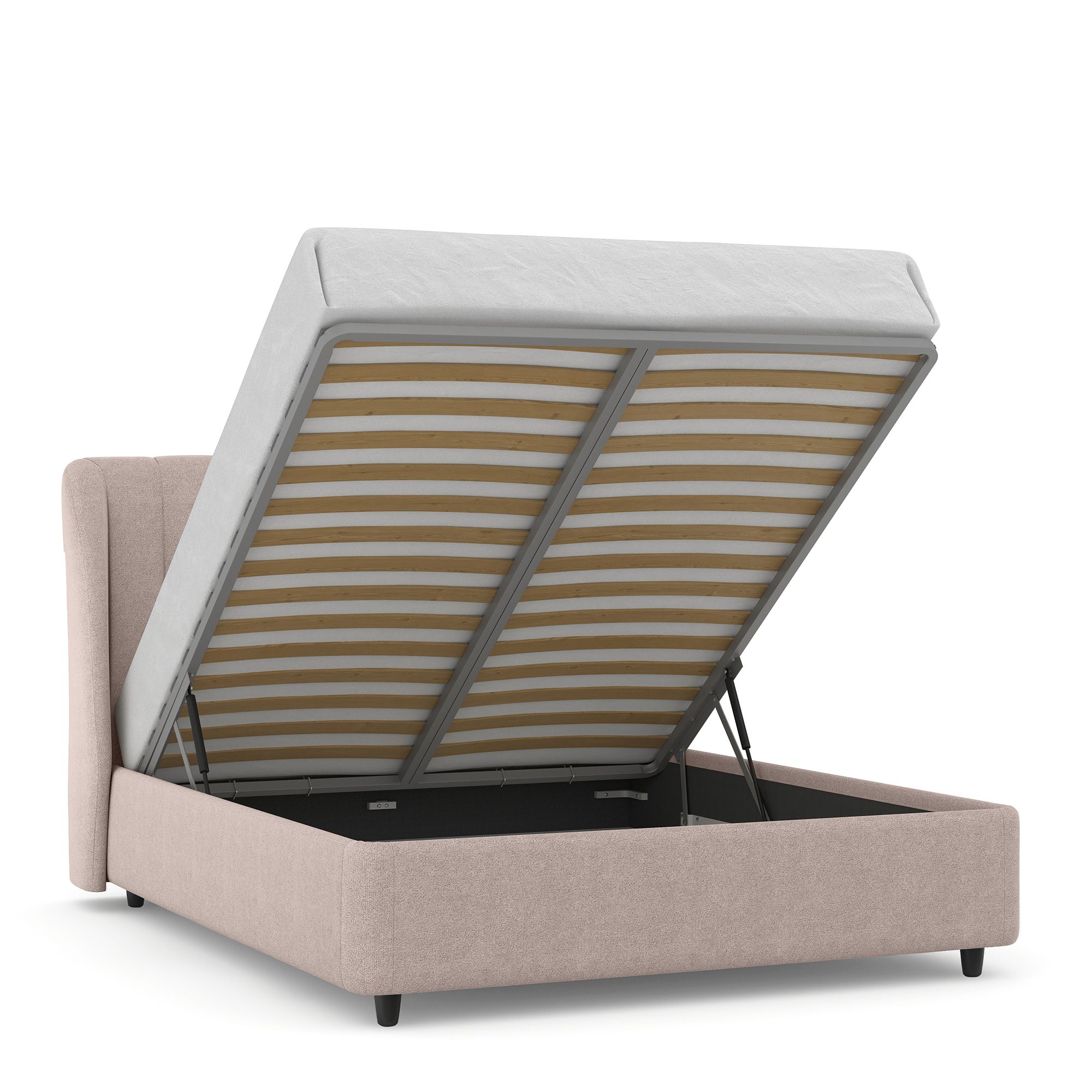 Вместительный короб внутри кровати подойдет для хранения подушек, белья и других вещей. В бельевом ящике нет перегородок – это позволяет использовать его, в том числе, для хранения длинных и крупногабаритных вещей.