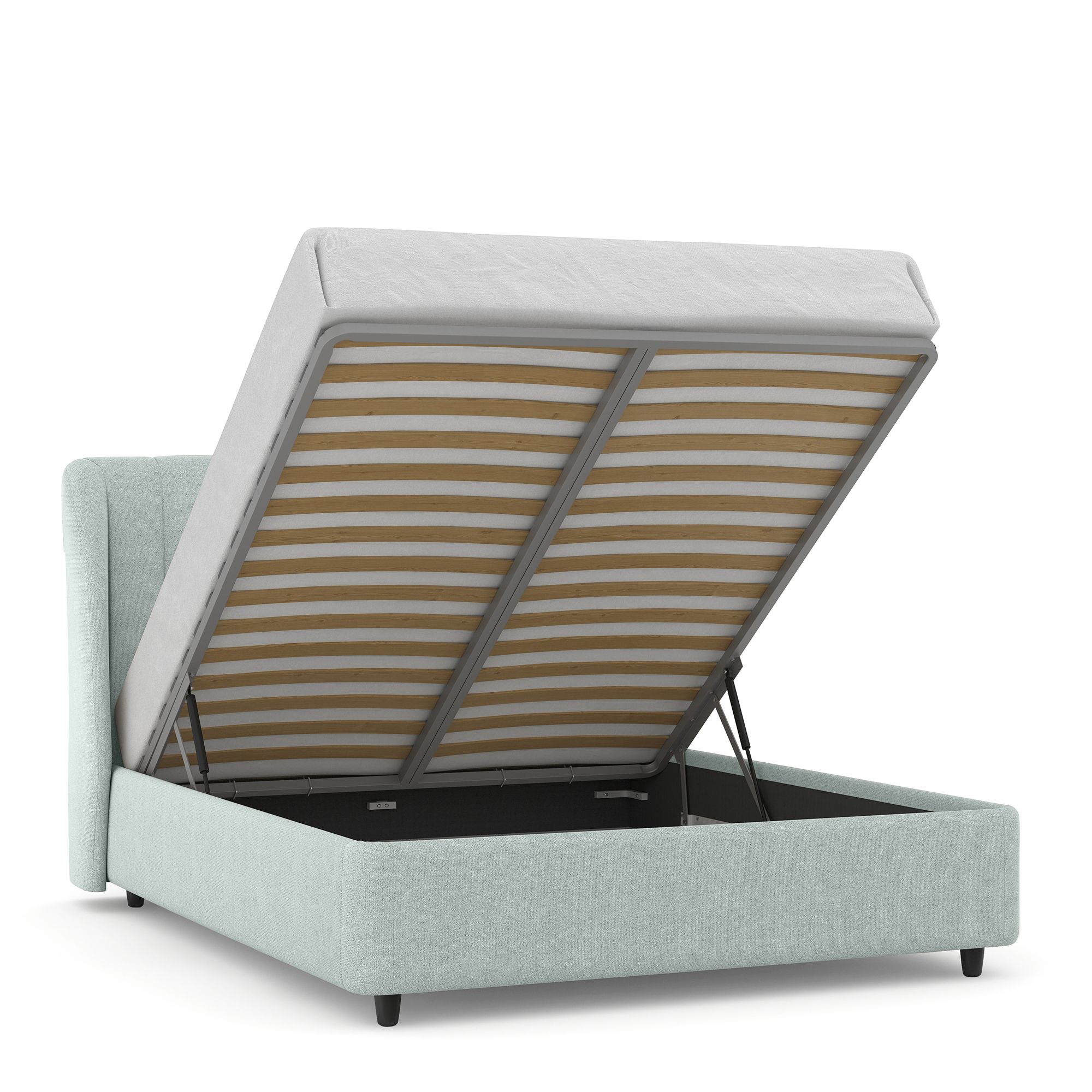Вместительный короб внутри кровати подойдет для хранения подушек, белья и других вещей. В бельевом ящике нет перегородок – это позволяет использовать его, в том числе, для хранения длинных и крупногабаритных вещей.