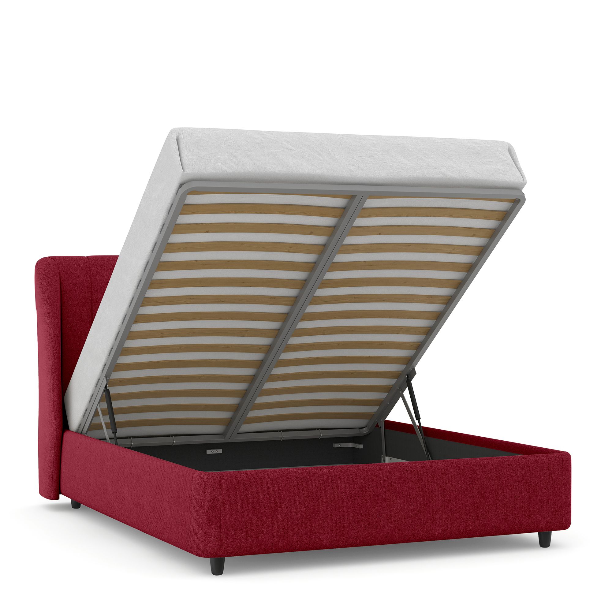 Вместительный короб внутри кровати подойдет для хранения подушек, белья и других вещей. В бельевом ящике нет перегородок – это позволяет использовать его, в том числе, для хранения длинных и крупногабаритных вещей.