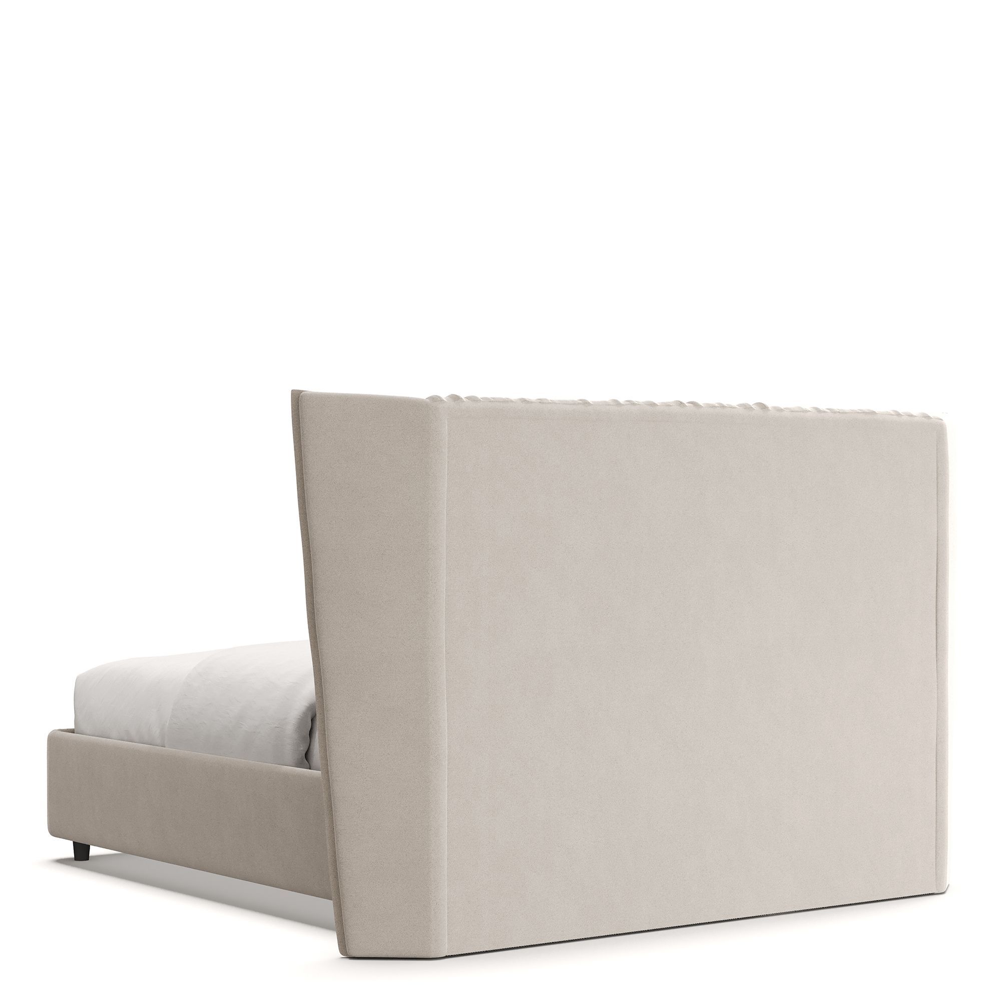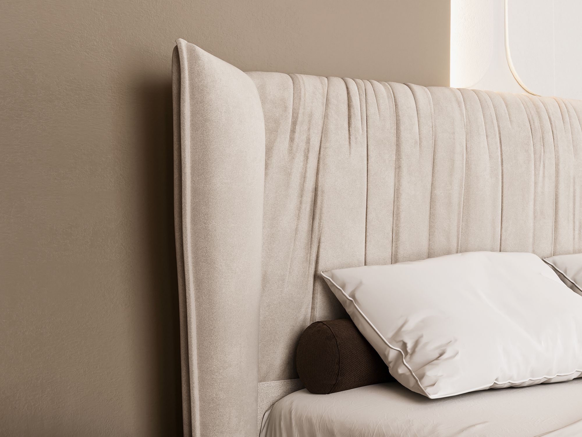 Кровать PLISSE в полностью мягком текстильном корпусе выполнена в отделке нежным микровелюром. Ее высокое драпированное изголовье словно «обнимает», образуя уютное пространство, защищенное от сквозняков. Скругленные углы кровати обеспечивают безопасность использования, а высокие ножки не создают препятствий при уборке с помощью робота-пылесоса. Модель оснащена надежным подъемным механизмом и вместительным ящиком для белья. Металлическое основание и ортопедическая решетка (каркас – металл) входят в комплектацию.
