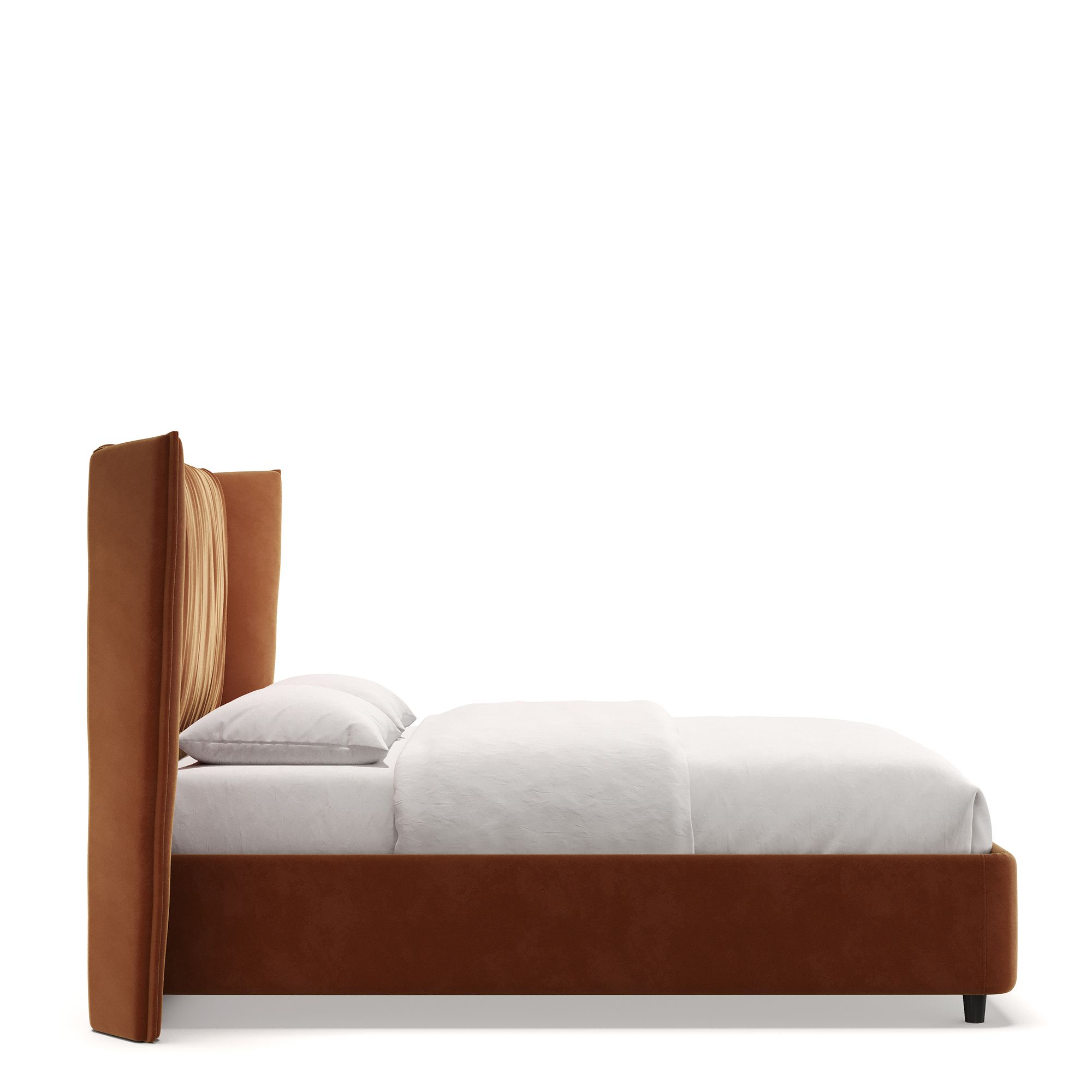 Кровать PLISSE в полностью мягком текстильном корпусе выполнена в отделке нежным микровелюром. Ее высокое драпированное изголовье словно «обнимает», образуя уютное пространство, защищенное от сквозняков. Скругленные углы кровати обеспечивают безопасность использования, а высокие ножки не создают препятствий при уборке с помощью робота-пылесоса. Модель оснащена надежным подъемным механизмом и вместительным ящиком для белья. Металлическое основание и ортопедическая решетка (каркас – металл) входят в комплектацию.