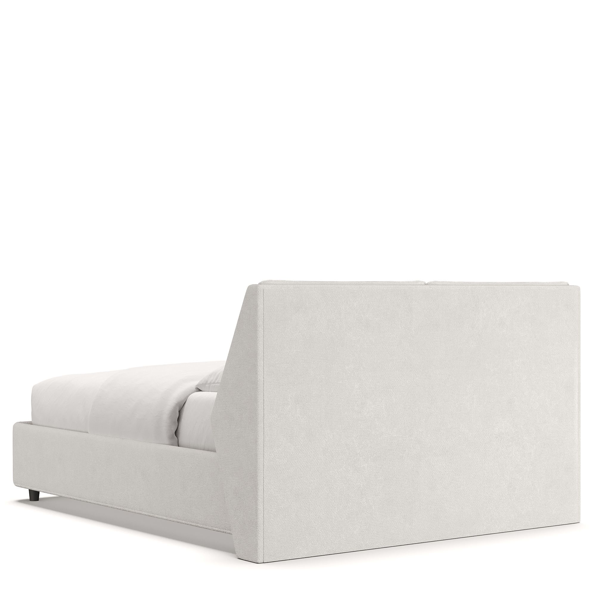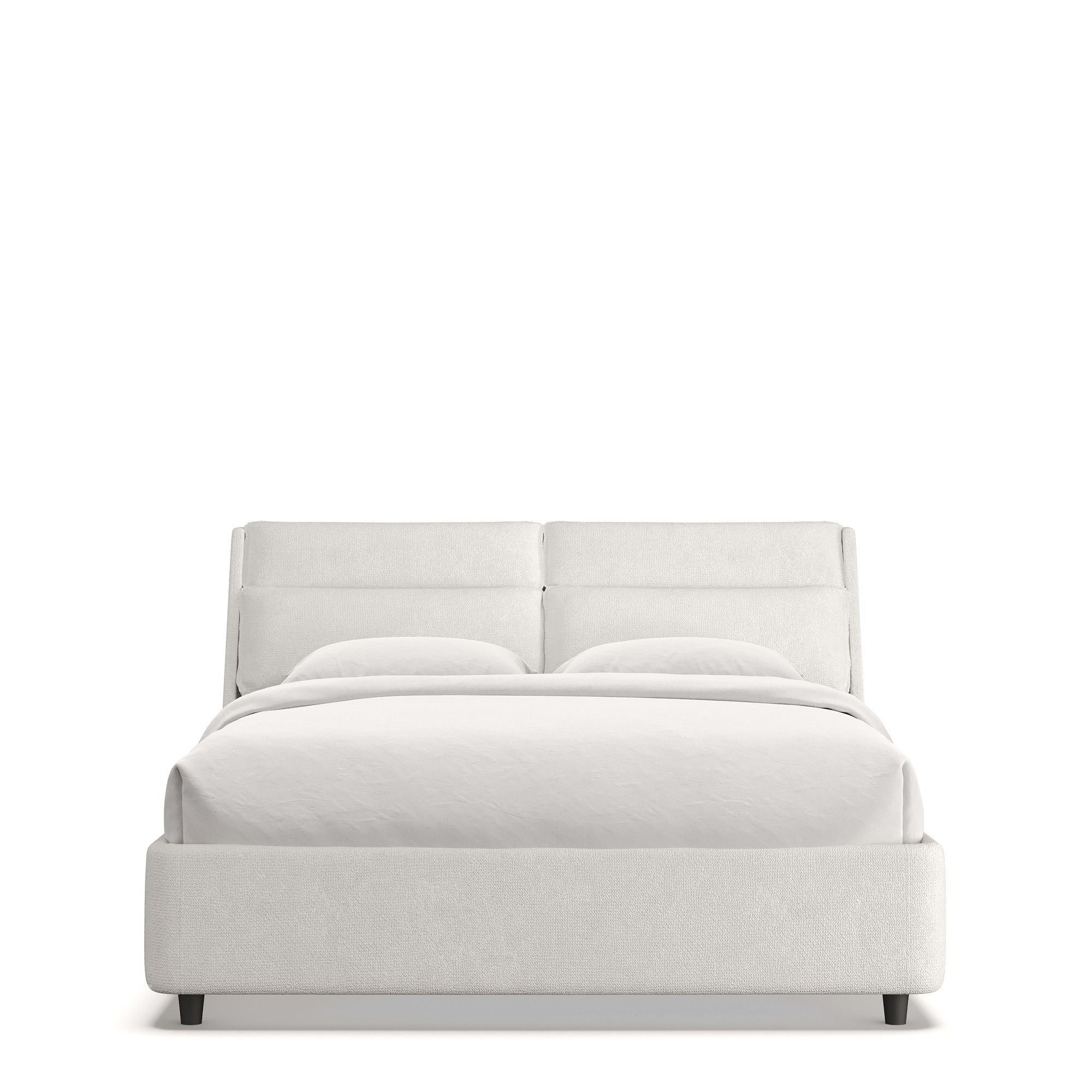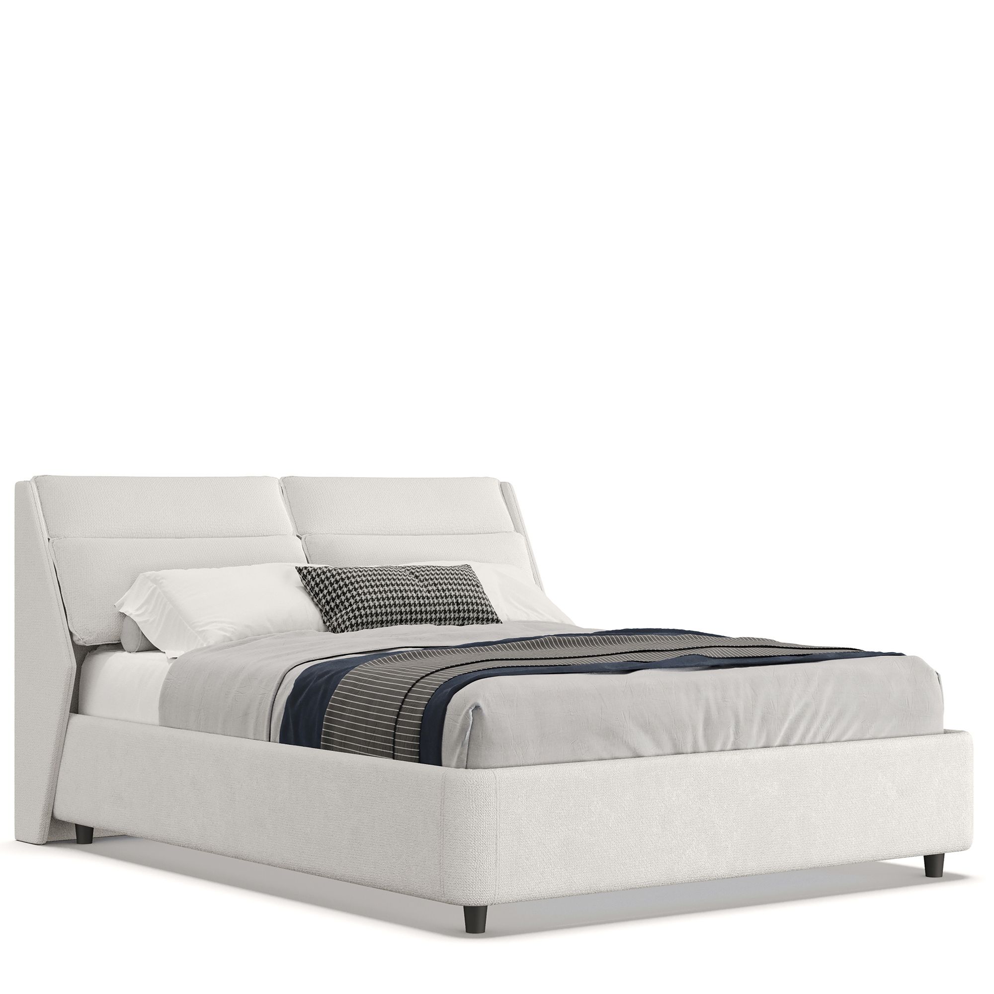 Кровать TEWIN выполнена в полностью мягком текстильном корпусе из рогожки, а ее изголовье оснащено необычными подушками, расположенными под углом, чтобы на них было удобно облокотиться, отдыхая за чтением или просмотром сериала. Скругленные углы основания обеспечивают безопасность использования, а дизайн с высокими ножными опорами не создает препятствий при уборке с помощью робота-пылесоса. Модель оснащена надежным подъемным механизмом и вместительным ящиком для белья. Металлическое основание и ортопедическая решетка (каркас – металл) входят в комплектацию.