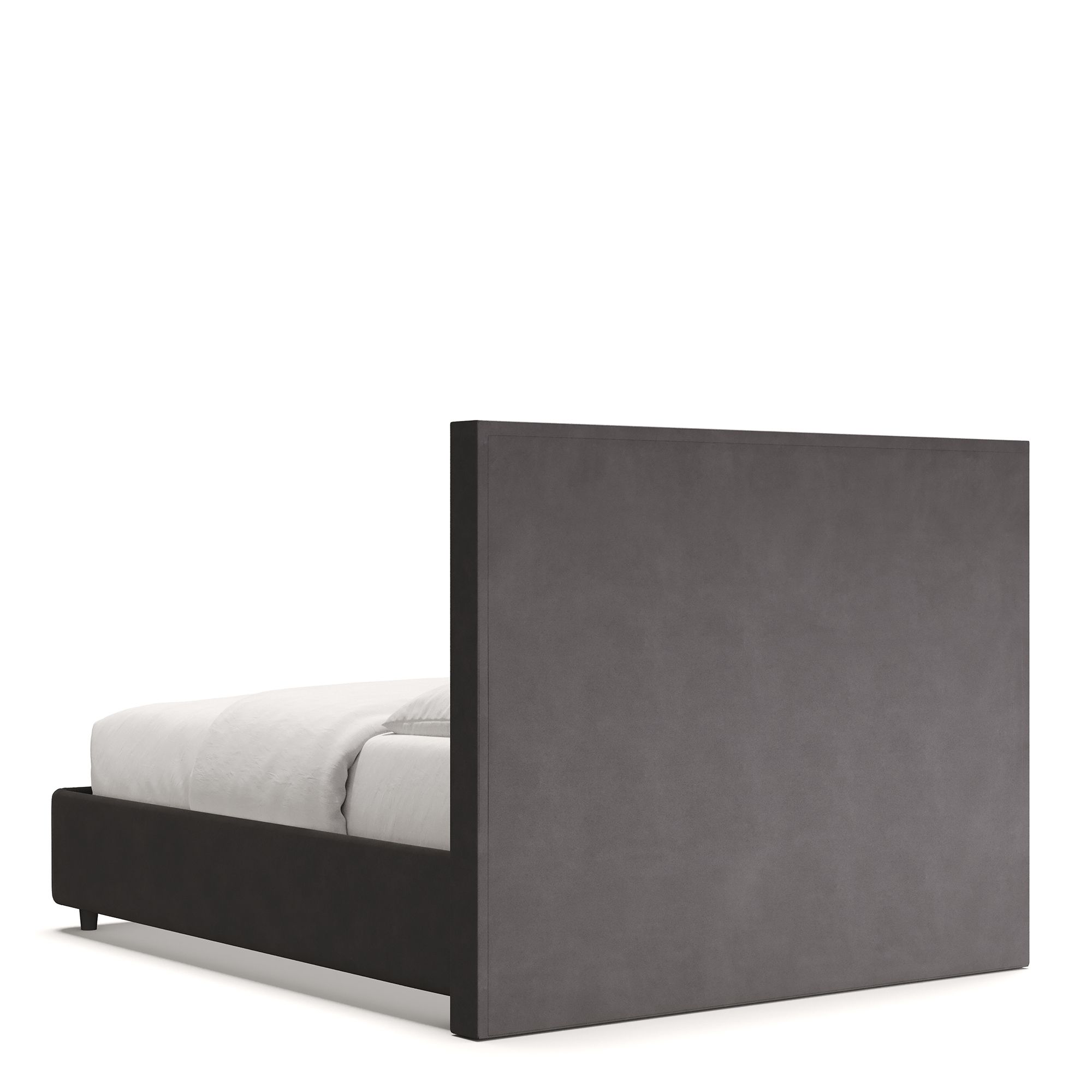 Оборотная сторона спинки выполнена в обивочной ткани, что позволяет ставить кровать в центре комнаты и зонировать пространство.