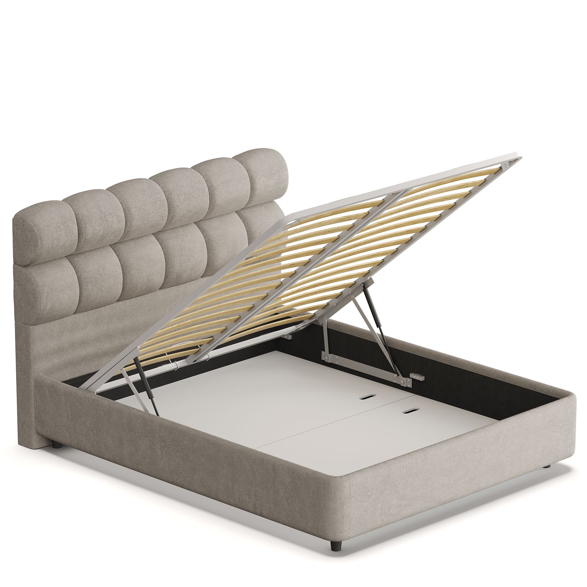 Кровать ROMBI воплощает в себе гармонию комфорта и изысканного дизайна. Её изголовье, выполненное из мягкой ткани, привносит в интерьер ощущение уюта и роскоши. Особенностью изголовья являются его выпуклые формы, напоминающие скругленные квадраты. Этот уникальный дизайн создаёт эффект объёма и глубины. Мягкие, округлые линии изголовья привносят в спальню ощущение уюта и тепла, создавая атмосферу спокойствия и расслабления. Модель станет стильным акцентом интерьера, обеспечивая при этом максимальный комфорт для вашего сна. Кровать оснащена надежным подъемным механизмом и вместительным ящиком для белья. Металлическое основание и ортопедическая решетка (каркас – металл) входят в комплектацию.