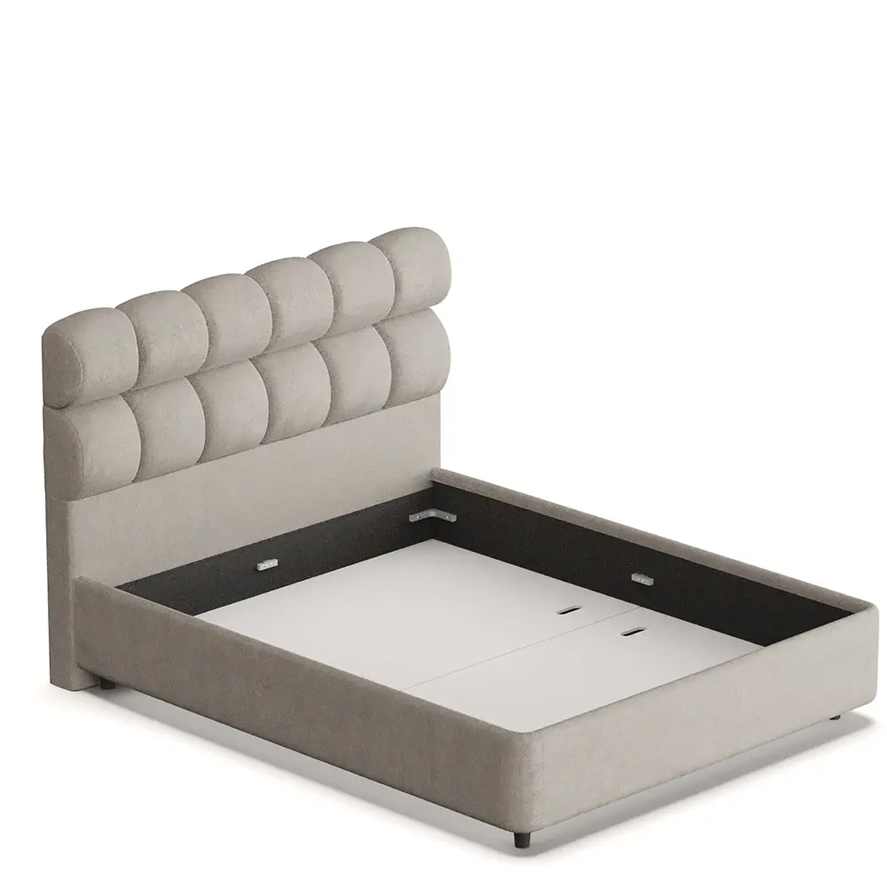 Благодаря мягкому наполнителю изголовья любители чтения перед сном и сериалов могут расположиться с комфортом. Пышная отделка в виде выпуклых роликов делает изголовье невероятно мягким и комфортным. Обивка кровати специально разработана по заказу бренда «Дятьково Design».