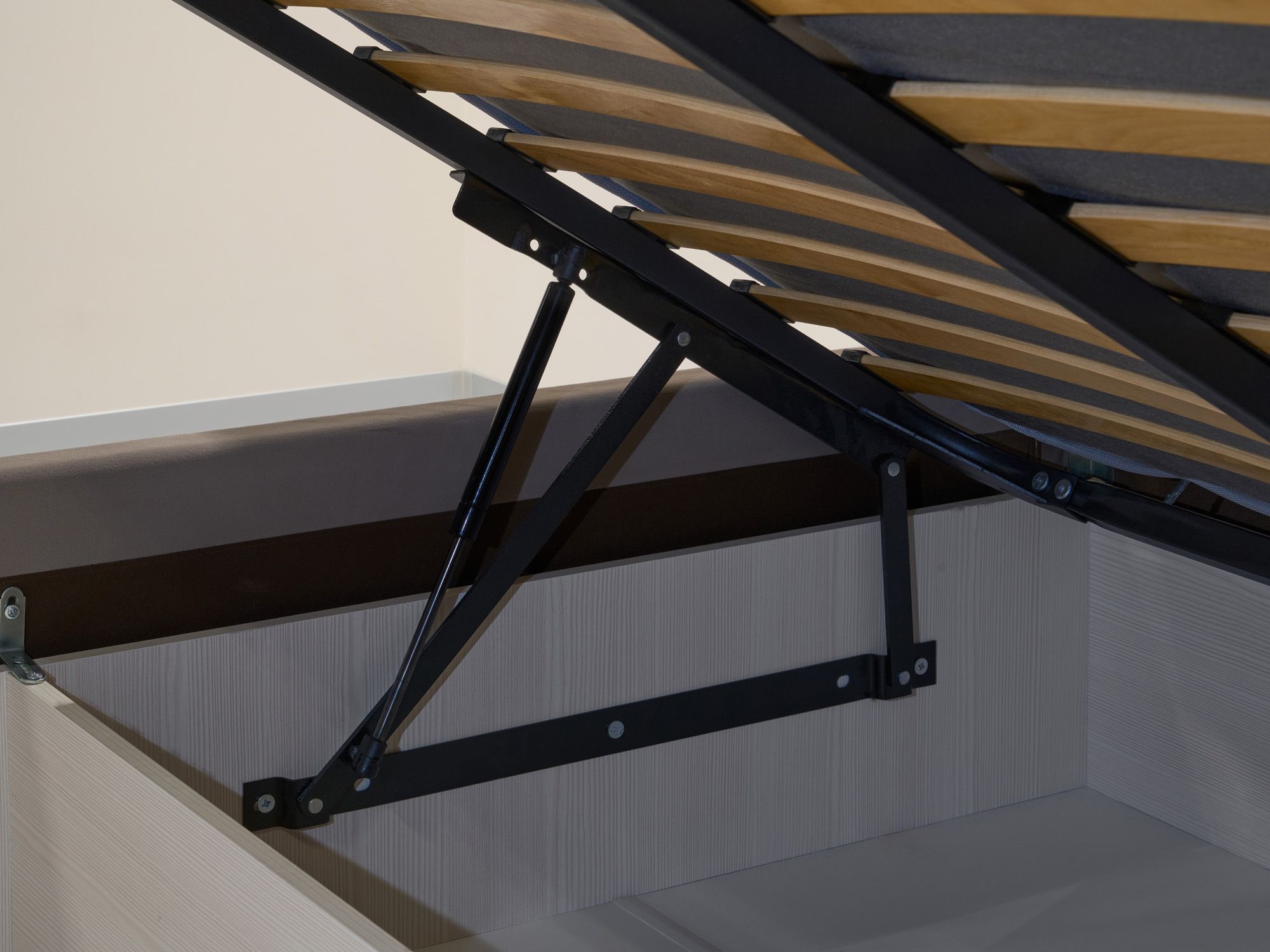 Подъемный механизм функционален и прочен. Газлифты обеспечивают больший срок службы мебели. Нагрузка на один подъемный механизм составляет до 75 кг.