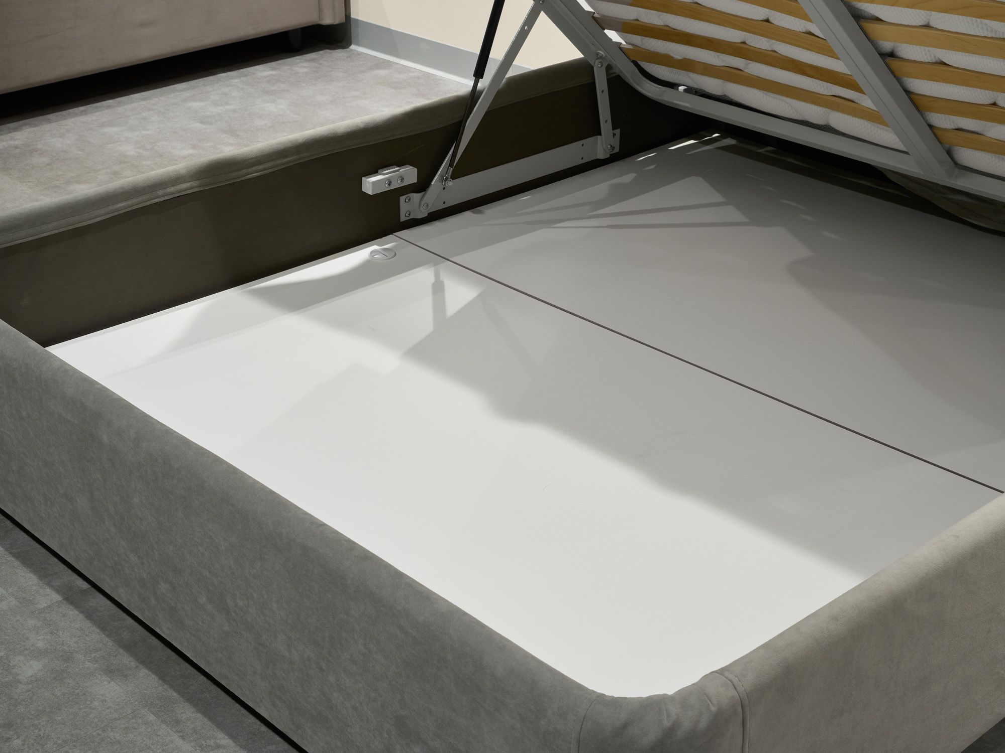 Вместительный короб внутри кровати подойдет для хранения подушек, белья и других вещей. В бельевом ящике нет перегородок – это позволяет использовать его, в том числе, для хранения длинных и крупногабаритных вещей.
