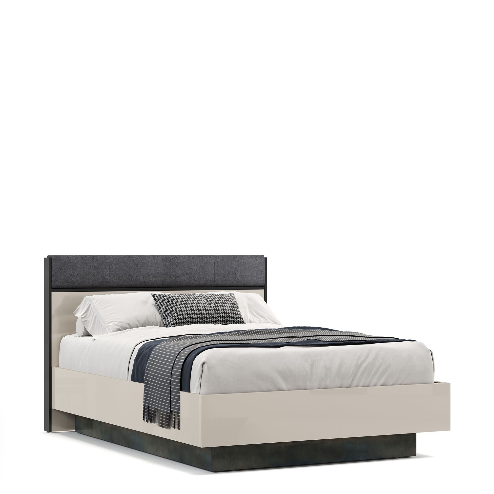 Полутораспальная кровать BRUNO выполнена в отделке глянцевой текстурой Kaschimir. Головная спинка модели оснащена мягким элементом в оттенке STEEL GREY. Площадь вместительного бельевого ящика меньше спального места, что обеспечивает удобный подход с любой стороны. Ортопедическая решетка (каркас – металл) с подъемным механизмом включена в комплект. Оформление бельевого ящика текстурой Galaxy, рисунок которой напоминает темный металл, поддерживается контрастными элементами изголовья. Предусмотрена возможность оснащения изголовья системой подсветки (заказывается отдельно).