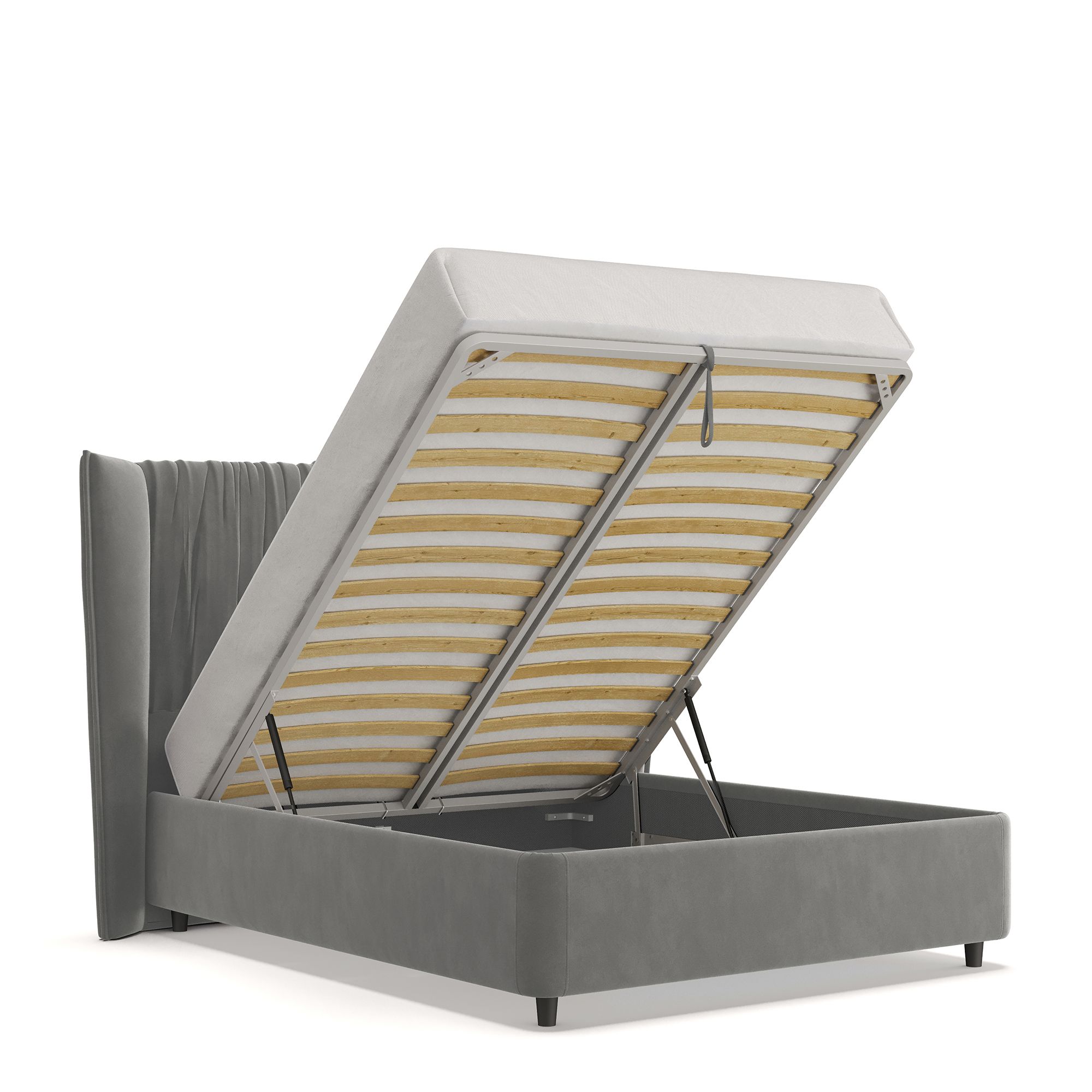Вместительный короб внутри кровати подойдет для хранения подушек, белья и других вещей. В бельевом ящике нет перегородок – это позволяет использовать его, в том числе, для хранения длинных и крупногабаритных вещей.