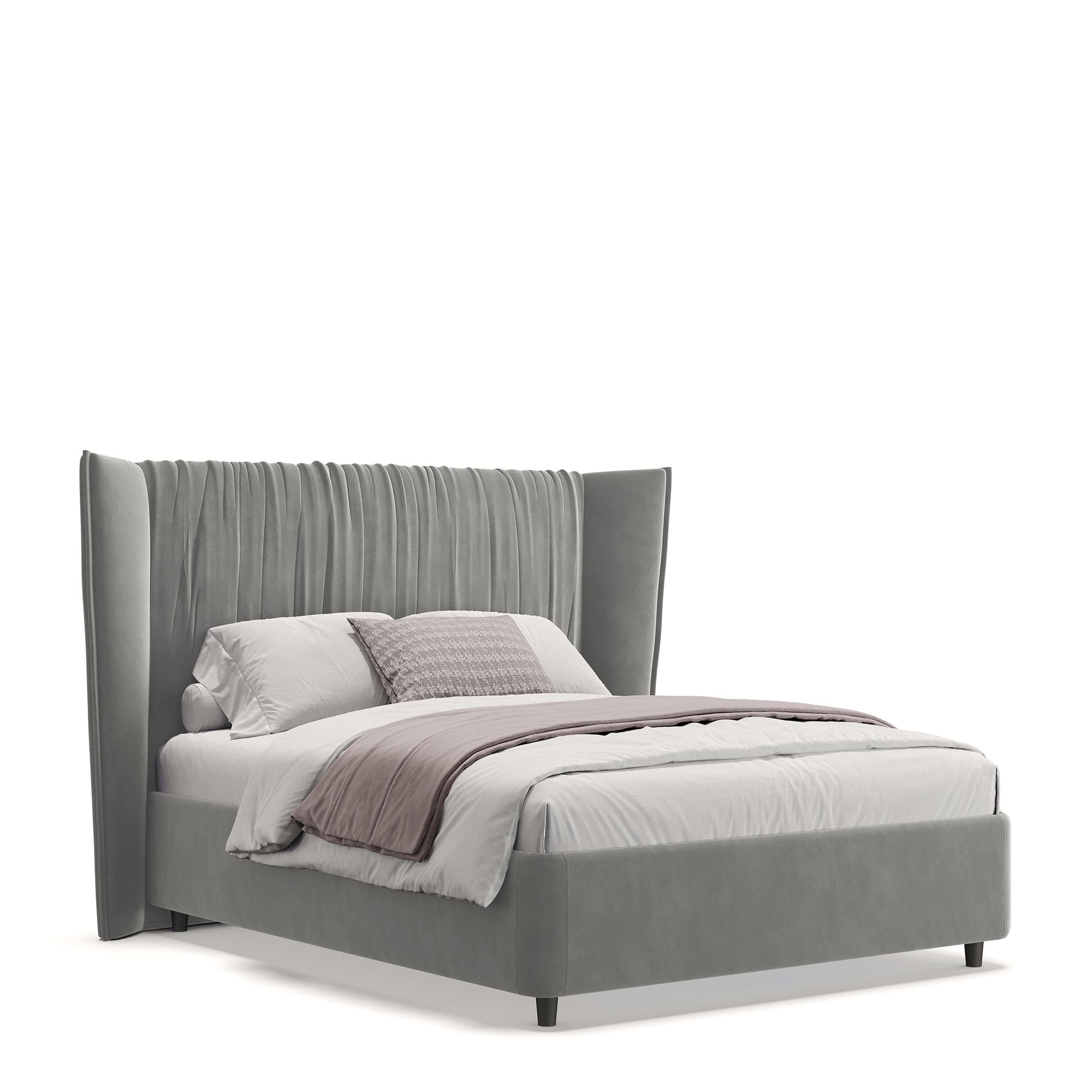 Полутораспальная кровать PLISSE в полностью мягком текстильном корпусе выполнена в отделке нежным микровелюром. Ее высокое драпированное изголовье словно «обнимает», образуя уютное пространство, защищенное от сквозняков. Скругленные углы кровати обеспечивают безопасность использования, а высокие ножки не создают препятствий при уборке с помощью робота-пылесоса. Модель оснащена надежным подъемным механизмом и вместительным ящиком для белья. Металлическое основание и ортопедическая решетка (каркас – металл) входят в комплектацию.