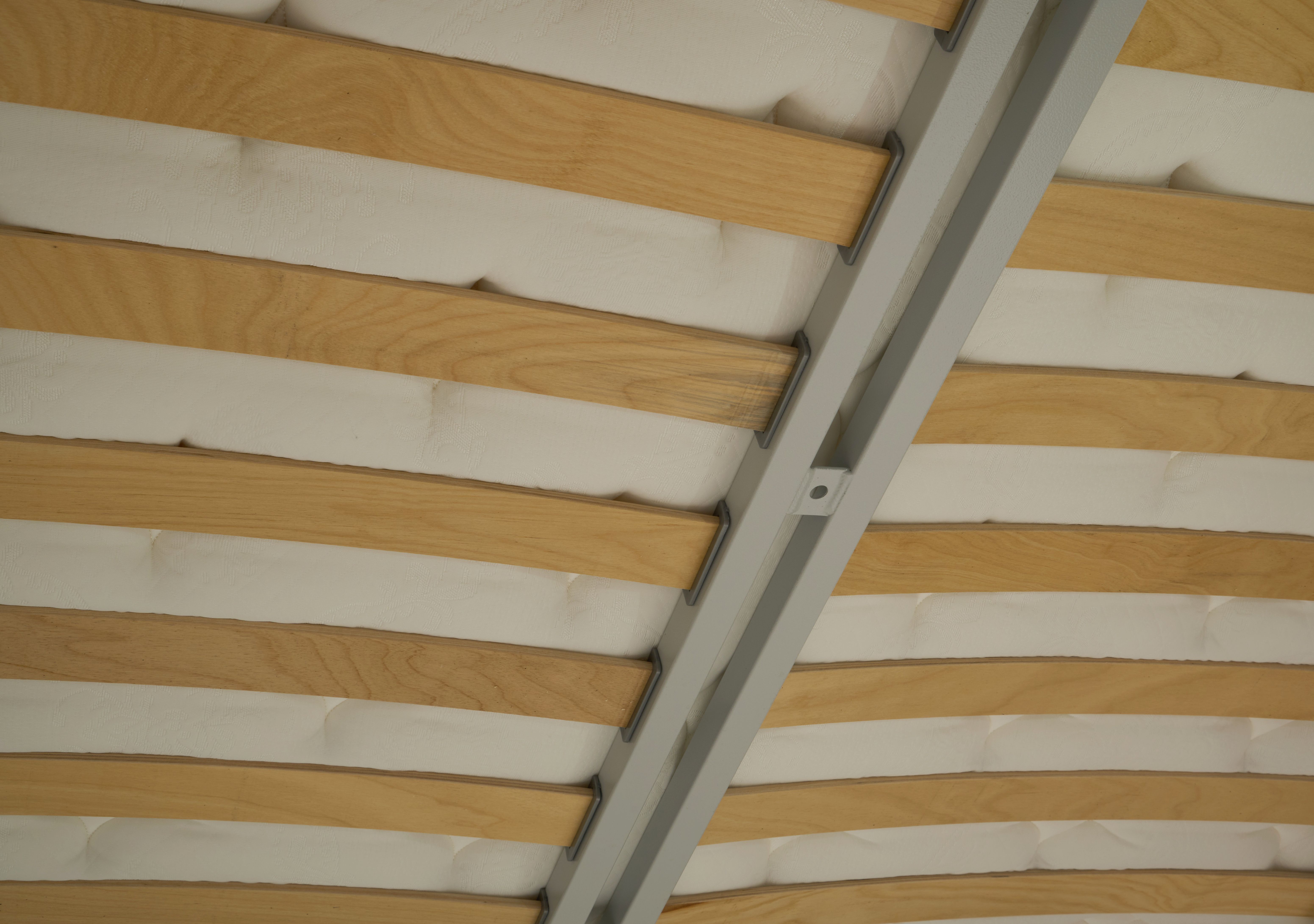 Основание с решёткой – прочное и в то же время чувствительное к нагрузке, что усиливает ортопедический эффект матраса. Благодаря шагу между ламелями матрас непрерывно вентилируется, не задерживает пыль и влагу, что увеличивает срок службы изделия. Ламели изготовлены из берёзы – натуральный материал не вызывает аллергии и безопасен для здоровья.
