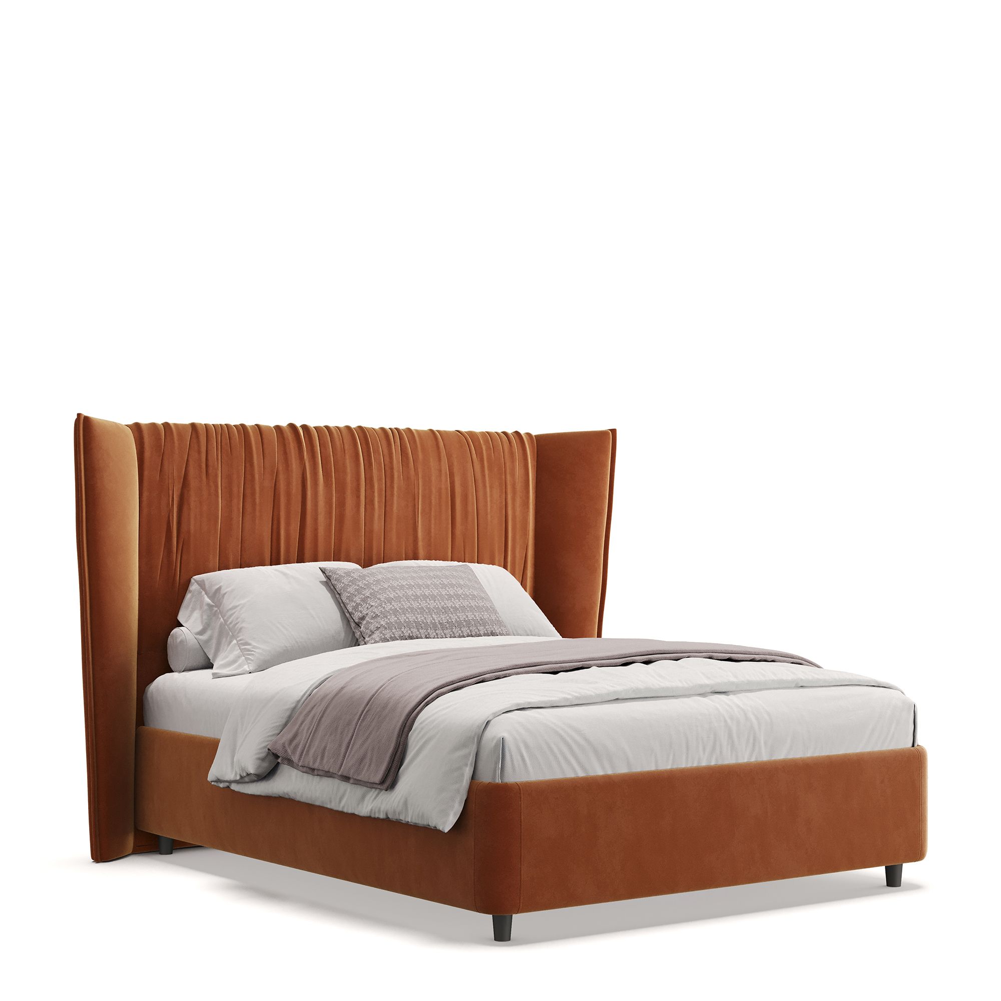 Полутораспальная кровать PLISSE в полностью мягком текстильном корпусе выполнена в отделке нежным микровелюром. Ее высокое драпированное изголовье словно «обнимает», образуя уютное пространство, защищенное от сквозняков. Скругленные углы кровати обеспечивают безопасность использования, а высокие ножки не создают препятствий при уборке с помощью робота-пылесоса. Модель оснащена надежным подъемным механизмом и вместительным ящиком для белья. Металлическое основание и ортопедическая решетка (каркас – металл) входят в комплектацию.
