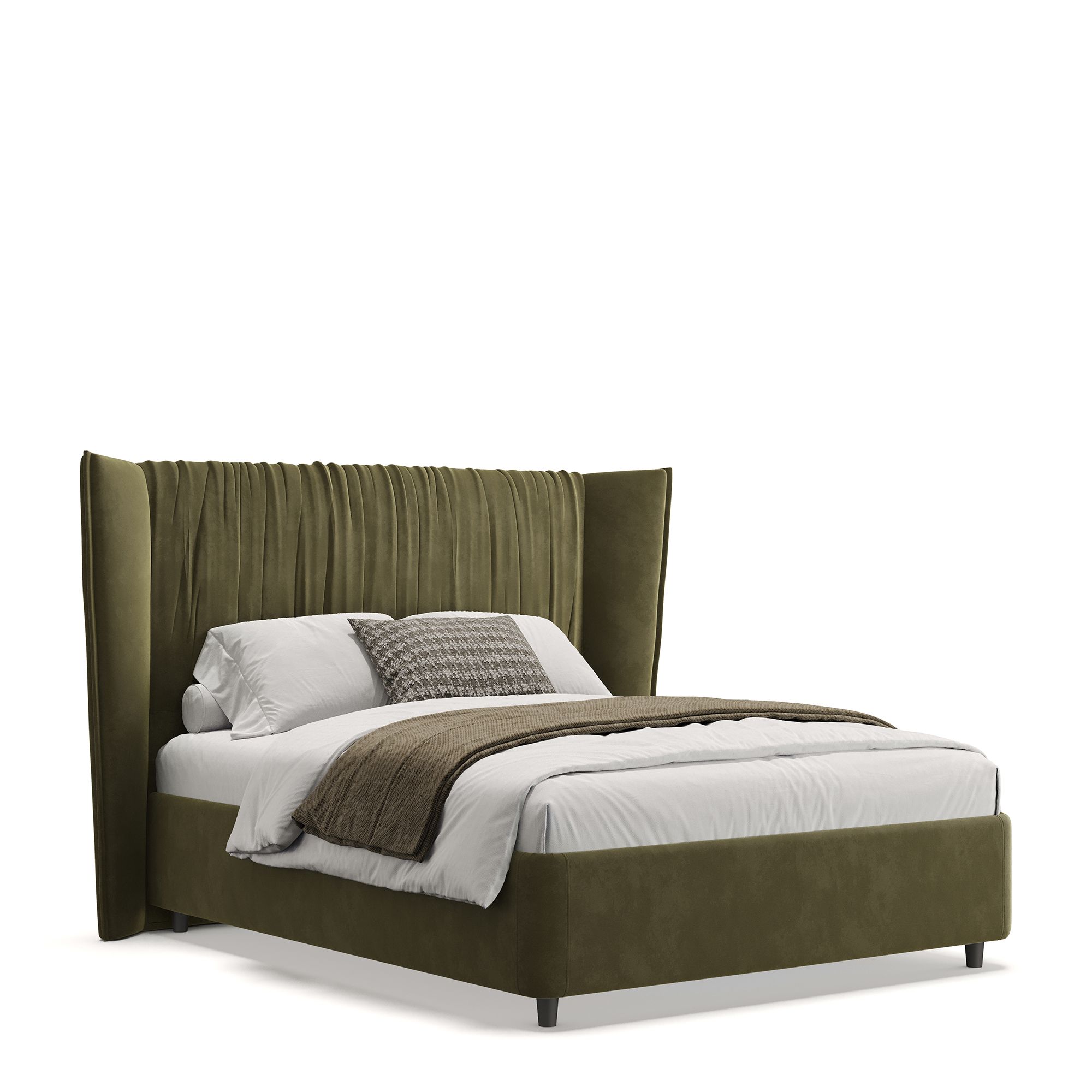 Полутораспальная кровать PLISSE в полностью мягком текстильном корпусе выполнена в отделке нежным микровелюром. Ее высокое драпированное изголовье словно «обнимает», образуя уютное пространство, защищенное от сквозняков. Скругленные углы кровати обеспечивают безопасность использования, а высокие ножки не создают препятствий при уборке с помощью робота-пылесоса. Модель оснащена надежным подъемным механизмом и вместительным ящиком для белья. Металлическое основание и ортопедическая решетка (каркас – металл) входят в комплектацию.