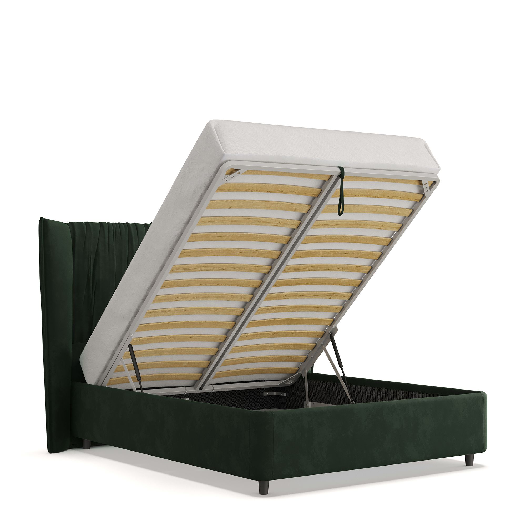 Вместительный короб внутри кровати подойдет для хранения подушек, белья и других вещей. В бельевом ящике нет перегородок – это позволяет использовать его, в том числе, для хранения длинных и крупногабаритных вещей.