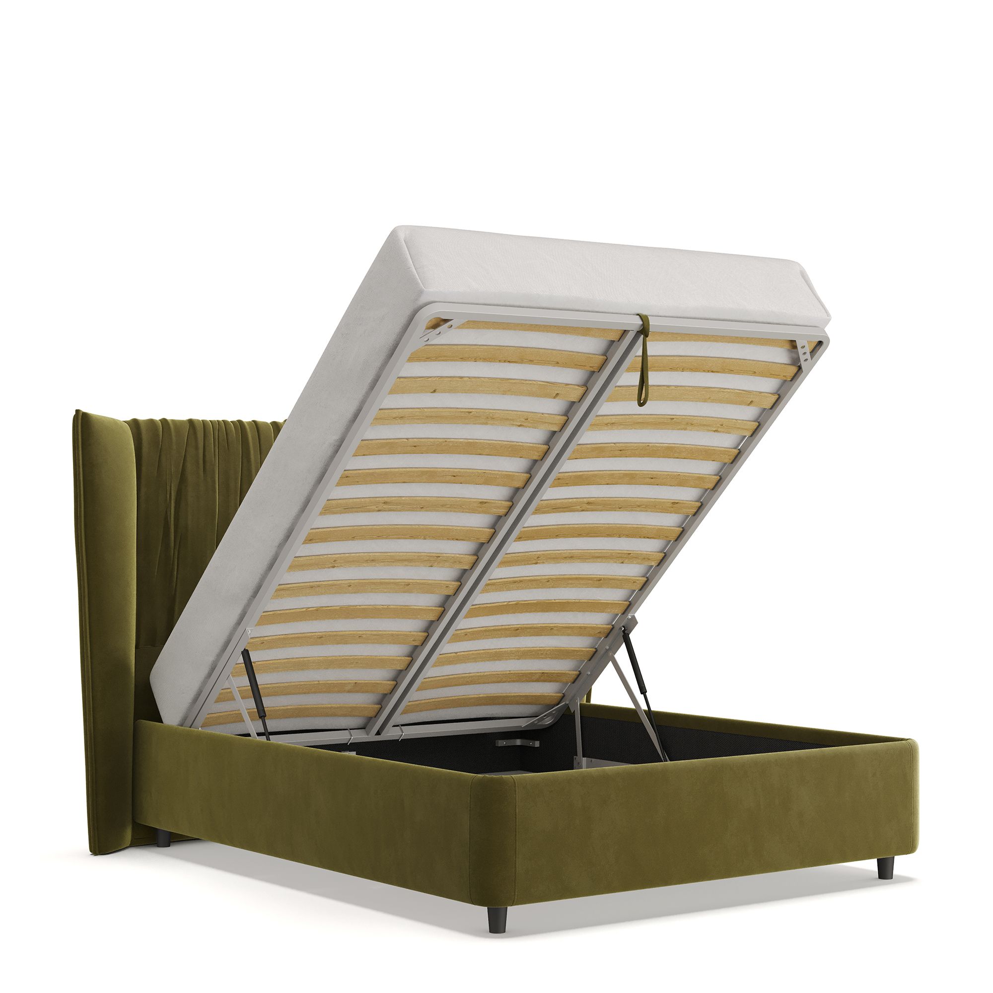 Вместительный короб внутри кровати подойдет для хранения подушек, белья и других вещей. В бельевом ящике нет перегородок – это позволяет использовать его, в том числе, для хранения длинных и крупногабаритных вещей.