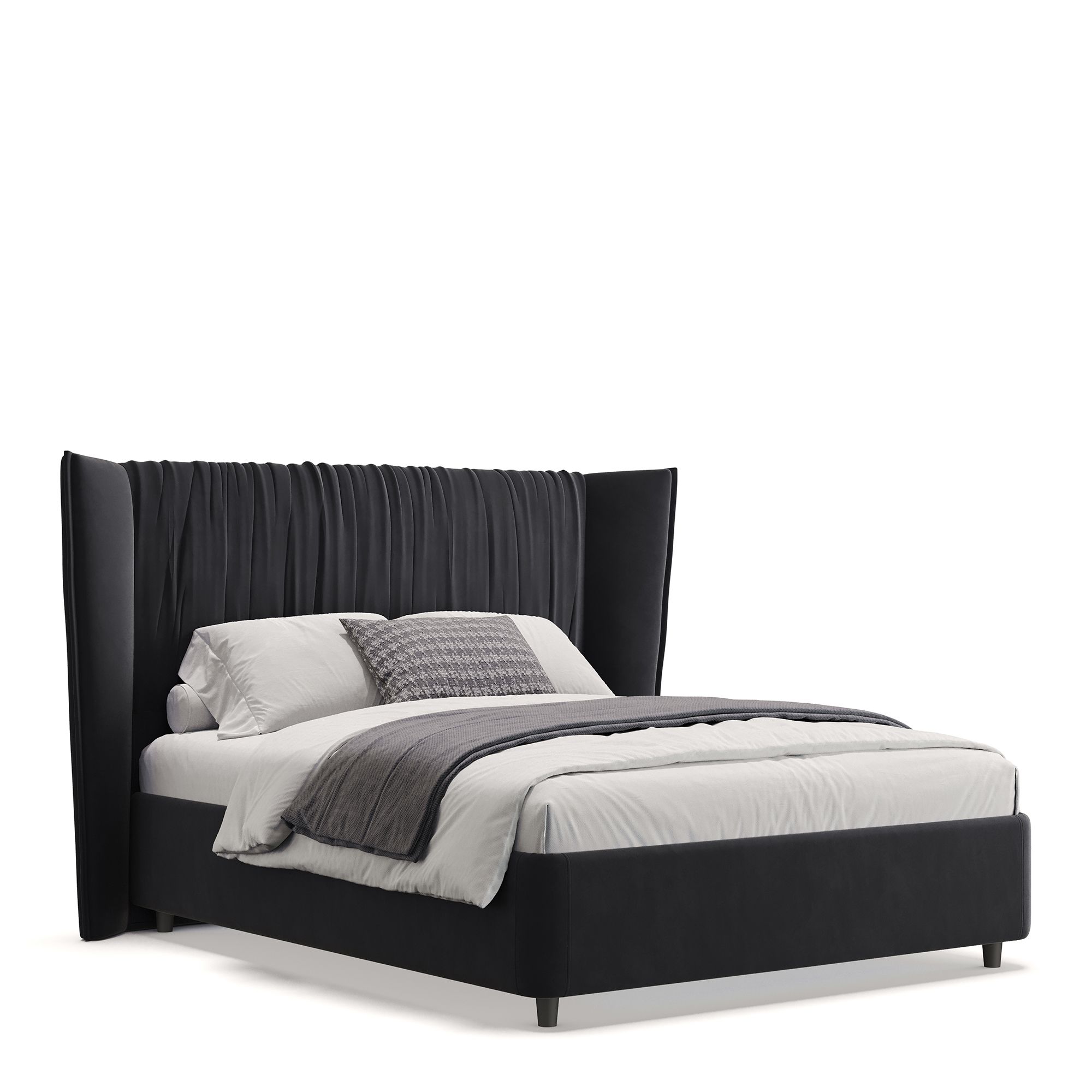 Полутораспальная кровать PLISSE в полностью мягком текстильном корпусе выполнена в отделке нежным микровелюром. Ее высокое драпированное изголовье словно «обнимает», образуя уютное пространство, защищенное от сквозняков. Скругленные углы кровати обеспечивают безопасность использования, а высокие ножки не создают препятствий при уборке с помощью робота-пылесоса. Модель оснащена надежным подъемным механизмом и вместительным ящиком для белья. Металлическое основание и ортопедическая решетка (каркас – металл) входят в комплектацию.