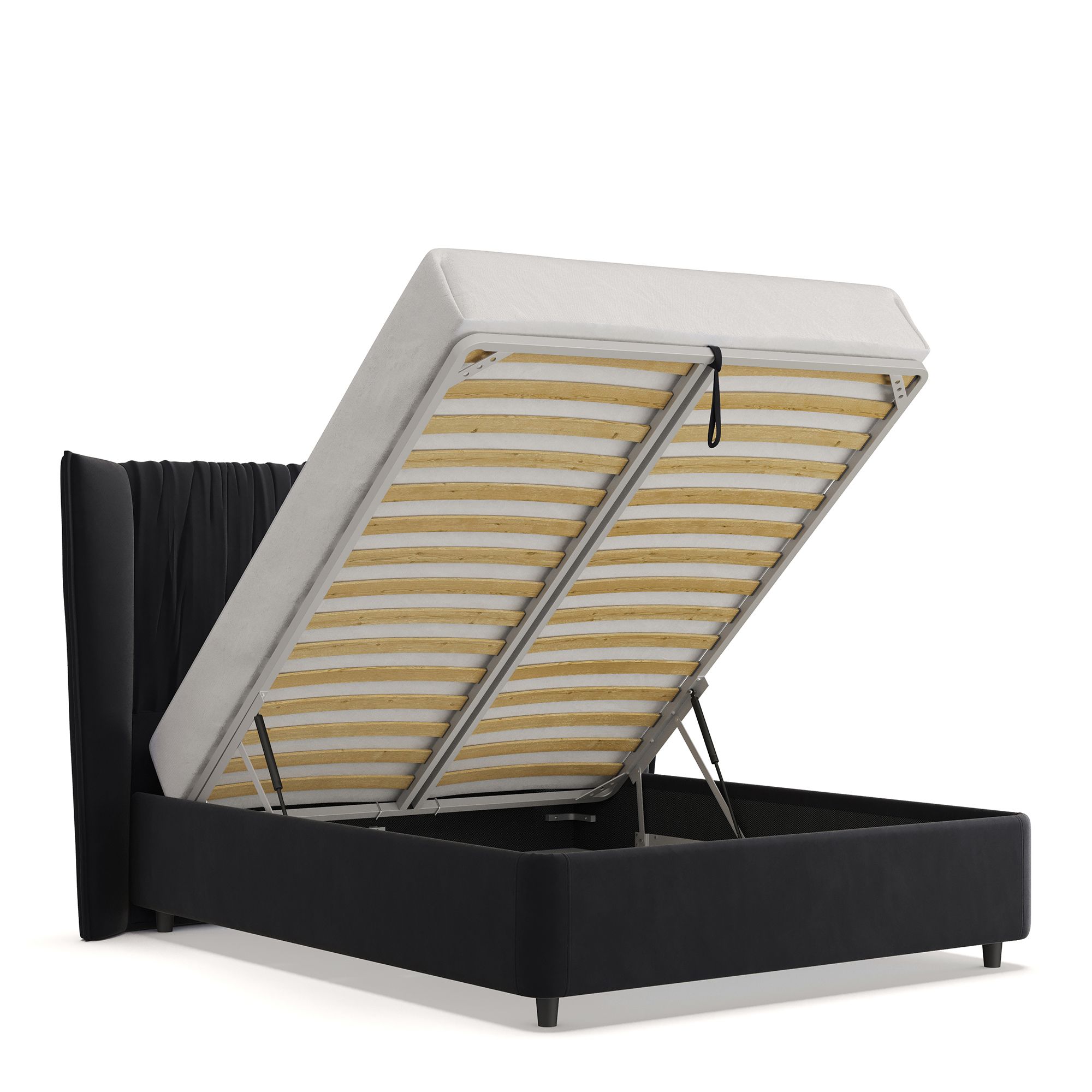 Вместительный короб внутри кровати подойдет для хранения подушек, белья и других вещей. В бельевом ящике нет перегородок – это позволяет использовать его, в том числе, для хранения длинных и крупногабаритных вещей.