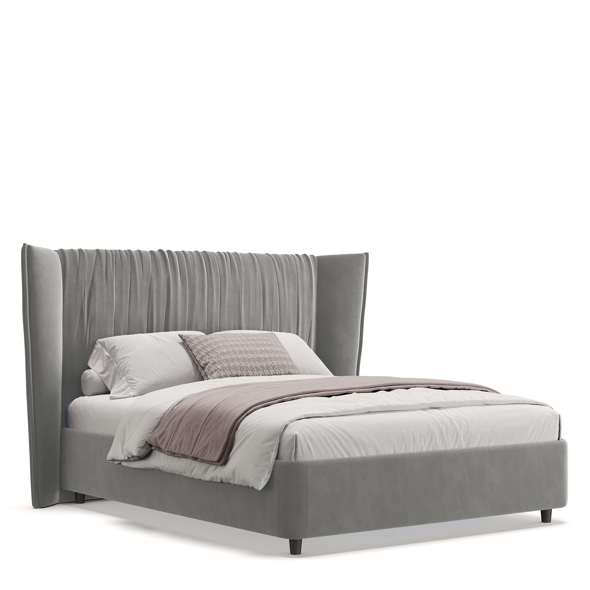Кровать PLISSE в полностью мягком текстильном корпусе выполнена в отделке нежным микровелюром. Ее высокое драпированное изголовье словно «обнимает», образуя уютное пространство, защищенное от сквозняков. Скругленные углы кровати обеспечивают безопасность использования, а высокие ножки не создают препятствий при уборке с помощью робота-пылесоса. Модель оснащена надежным подъемным механизмом и вместительным ящиком для белья. Металлическое основание и ортопедическая решетка (каркас – металл) входят в комплектацию.