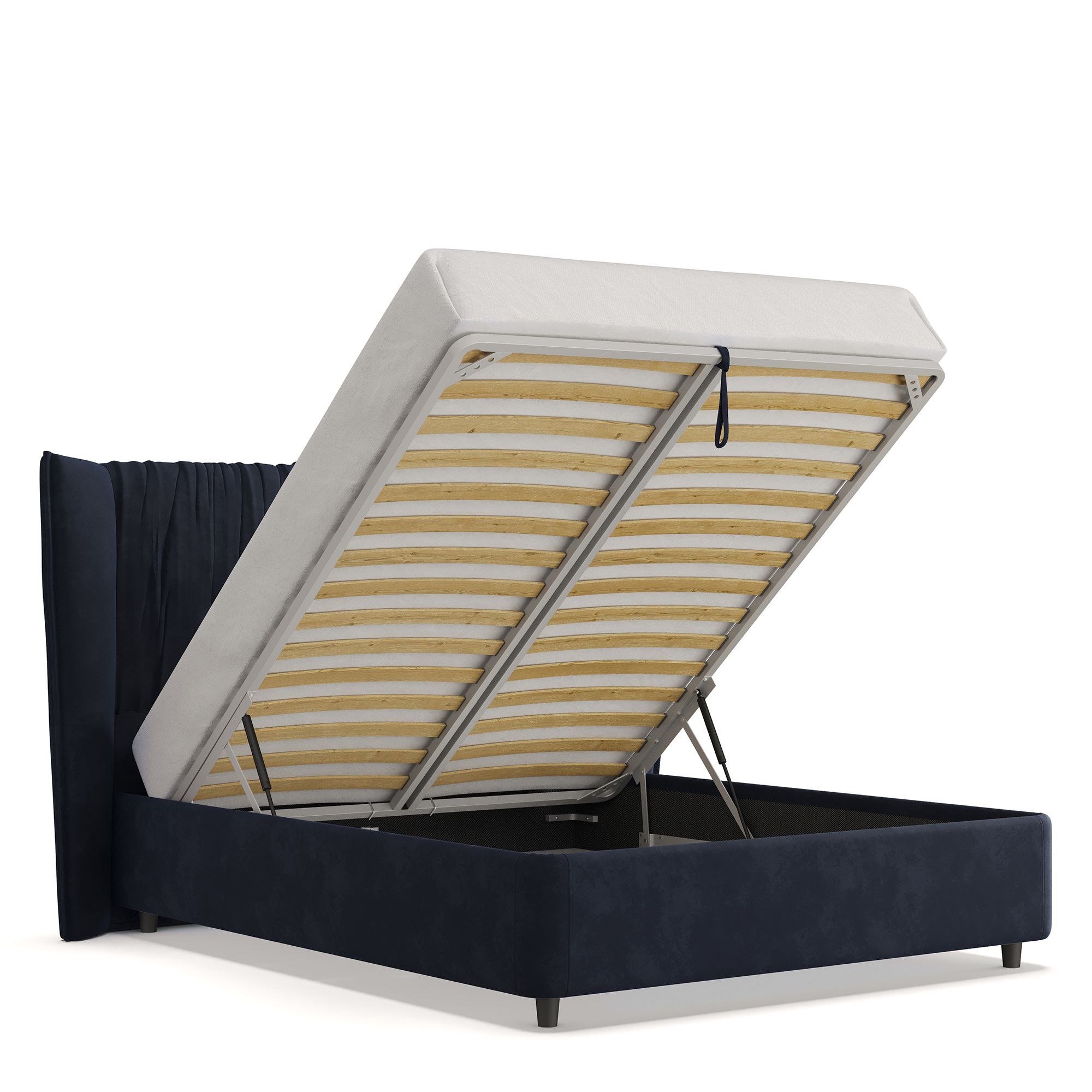 Вместительный короб внутри кровати подойдет для хранения подушек, белья и других вещей. В бельевом ящике нет перегородок – это позволяет использовать его, в том числе, для хранения длинных и крупногабаритных вещей.