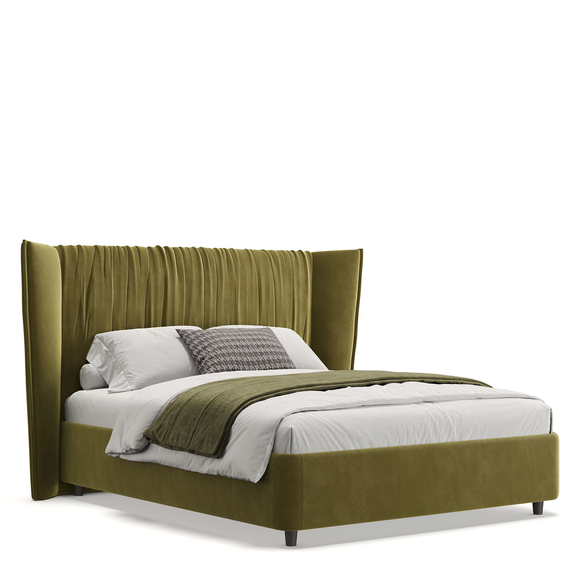 Кровать PLISSE в полностью мягком текстильном корпусе выполнена в отделке нежным микровелюром. Ее высокое драпированное изголовье словно «обнимает», образуя уютное пространство, защищенное от сквозняков. Скругленные углы кровати обеспечивают безопасность использования, а высокие ножки не создают препятствий при уборке с помощью робота-пылесоса. Модель оснащена надежным подъемным механизмом и вместительным ящиком для белья. Металлическое основание и ортопедическая решетка (каркас – металл) входят в комплектацию.