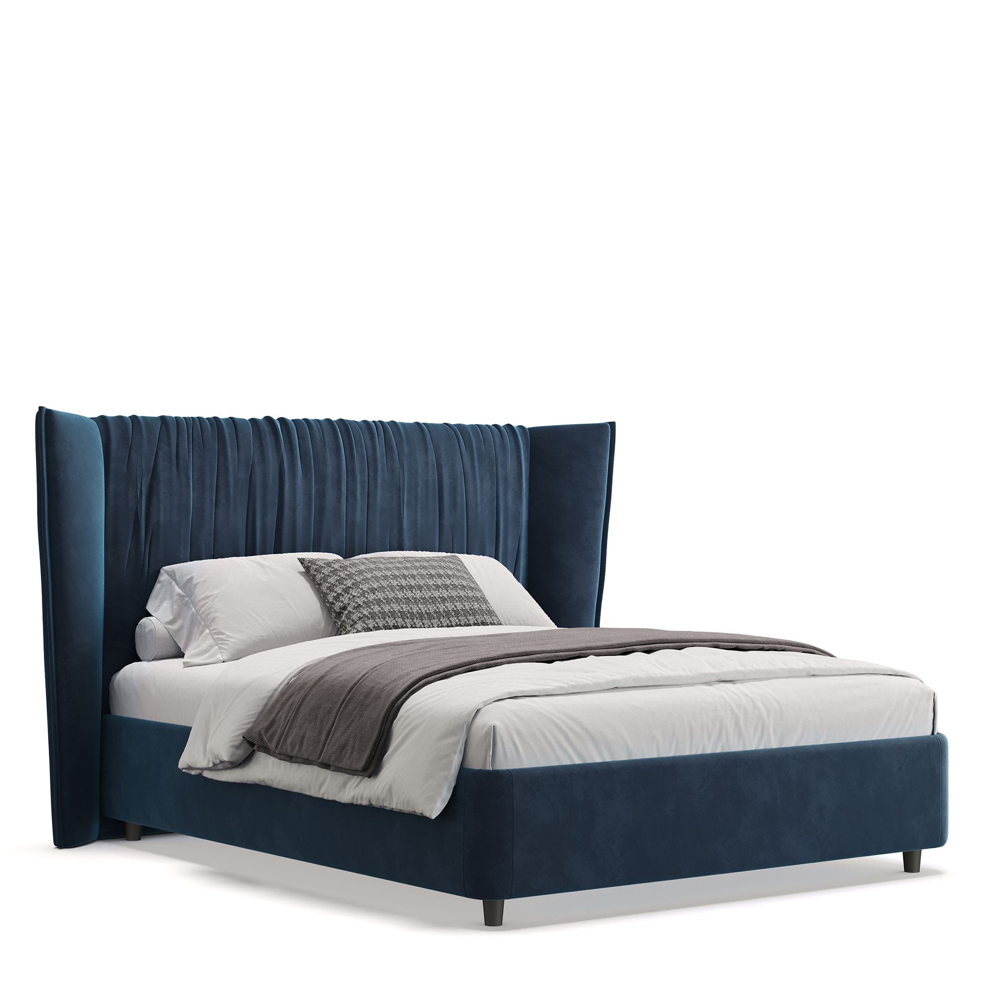 Кровать PLISSE в полностью мягком текстильном корпусе выполнена в отделке нежным микровелюром. Ее высокое драпированное изголовье словно «обнимает», образуя уютное пространство, защищенное от сквозняков. Скругленные углы кровати обеспечивают безопасность использования, а высокие ножки не создают препятствий при уборке с помощью робота-пылесоса. Модель оснащена надежным подъемным механизмом и вместительным ящиком для белья. Металлическое основание и ортопедическая решетка (каркас – металл) входят в комплектацию.