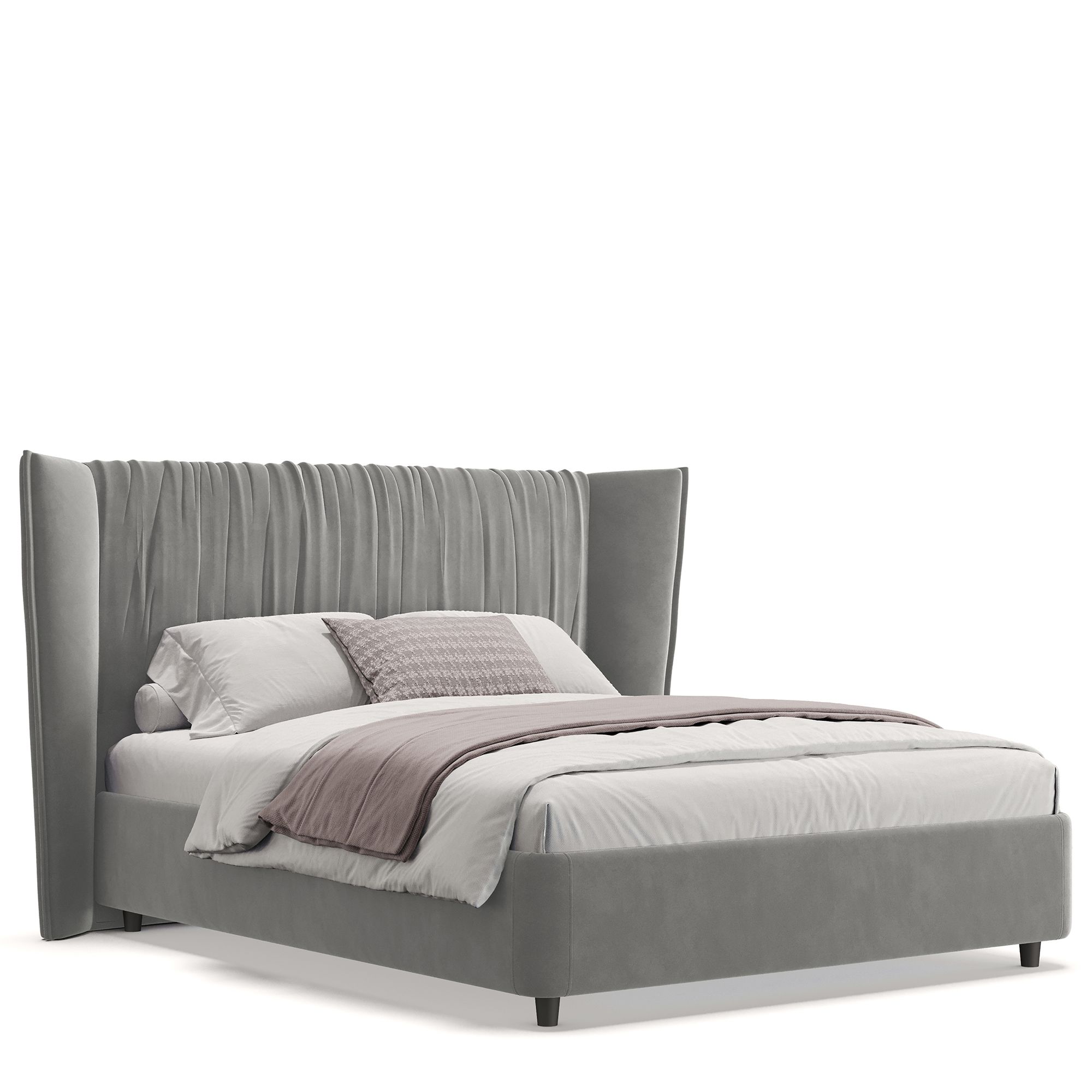 Кровать PLISSE в полностью мягком текстильном корпусе выполнена в отделке нежным микровелюром. Ее высокое драпированное изголовье словно «обнимает», образуя уютное пространство, защищенное от сквозняков. Скругленные углы кровати обеспечивают безопасность использования, а высокие ножки не создают препятствий при уборке с помощью робота-пылесоса. Модель оснащена надежным подъемным механизмом и вместительным ящиком для белья. Металлическое основание и ортопедическая решетка (каркас – металл) входят в комплектацию.