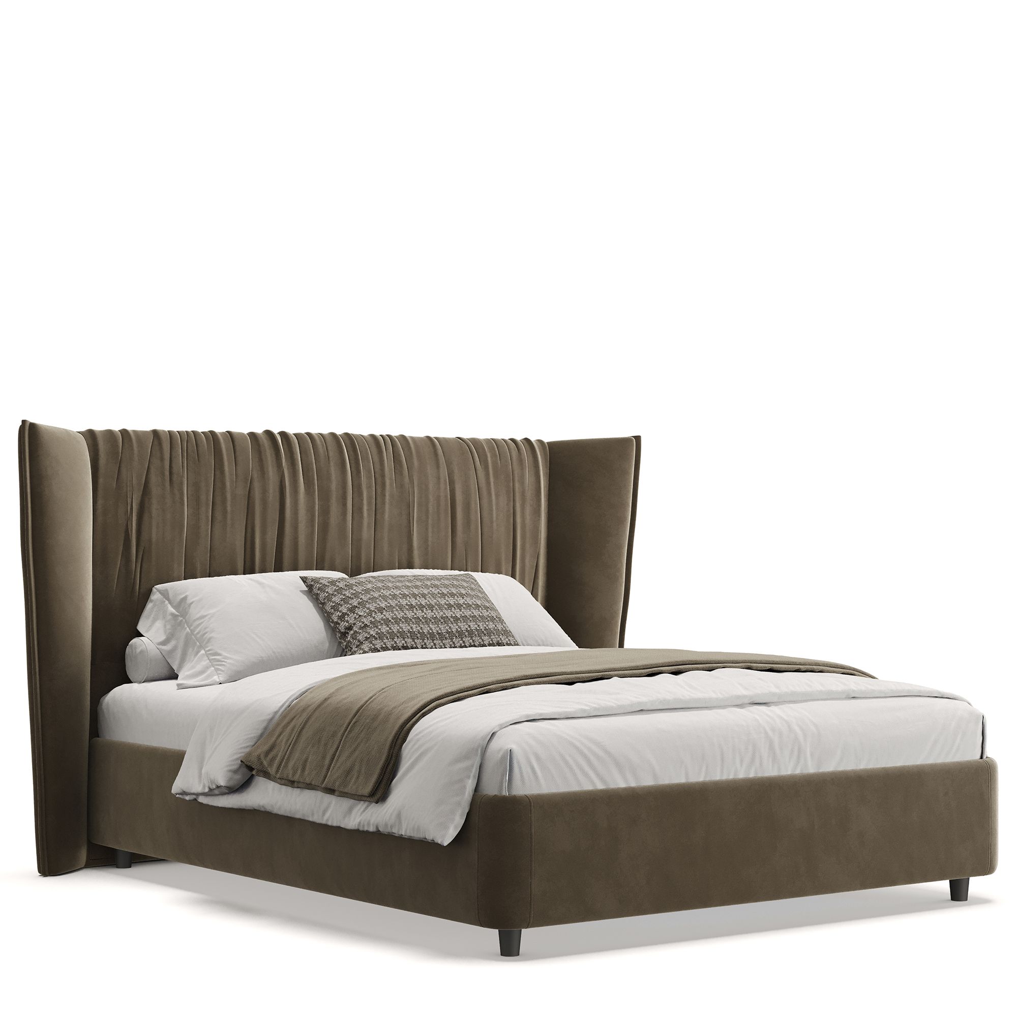 Кровать PLISSE в полностью мягком текстильном корпусе выполнена в отделке нежным микровелюром. Ее высокое драпированное изголовье словно «обнимает», образуя уютное пространство, защищенное от сквозняков. Скругленные углы кровати обеспечивают безопасность использования, а высокие ножки не создают препятствий при уборке с помощью робота-пылесоса. Модель оснащена надежным подъемным механизмом и вместительным ящиком для белья. Металлическое основание и ортопедическая решетка (каркас – металл) входят в комплектацию.