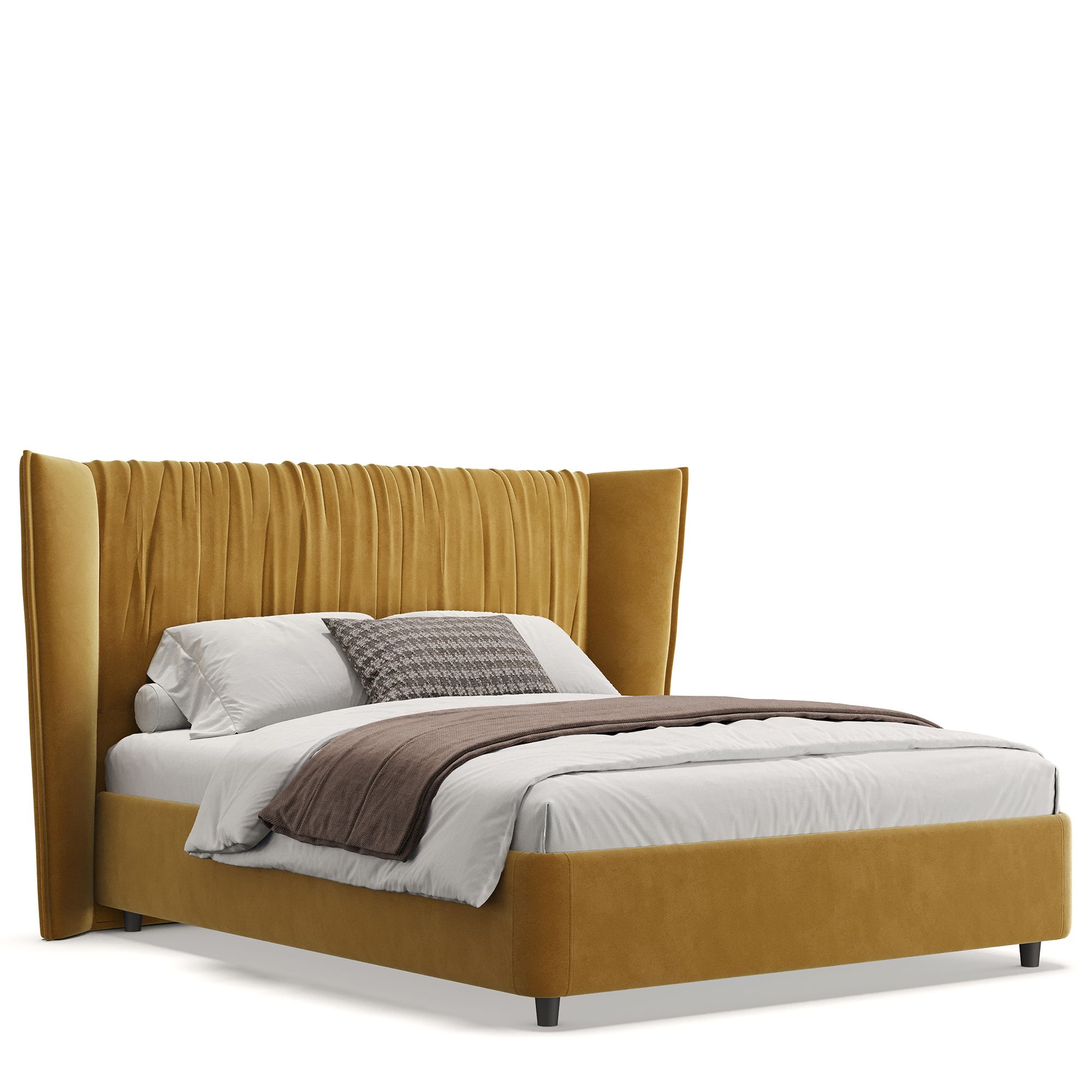 Кровать PLISSE в полностью мягком текстильном корпусе выполнена в отделке нежным микровелюром. Ее высокое драпированное изголовье словно «обнимает», образуя уютное пространство, защищенное от сквозняков. Скругленные углы кровати обеспечивают безопасность использования, а высокие ножки не создают препятствий при уборке с помощью робота-пылесоса. Модель оснащена надежным подъемным механизмом и вместительным ящиком для белья. Металлическое основание и ортопедическая решетка (каркас – металл) входят в комплектацию.
