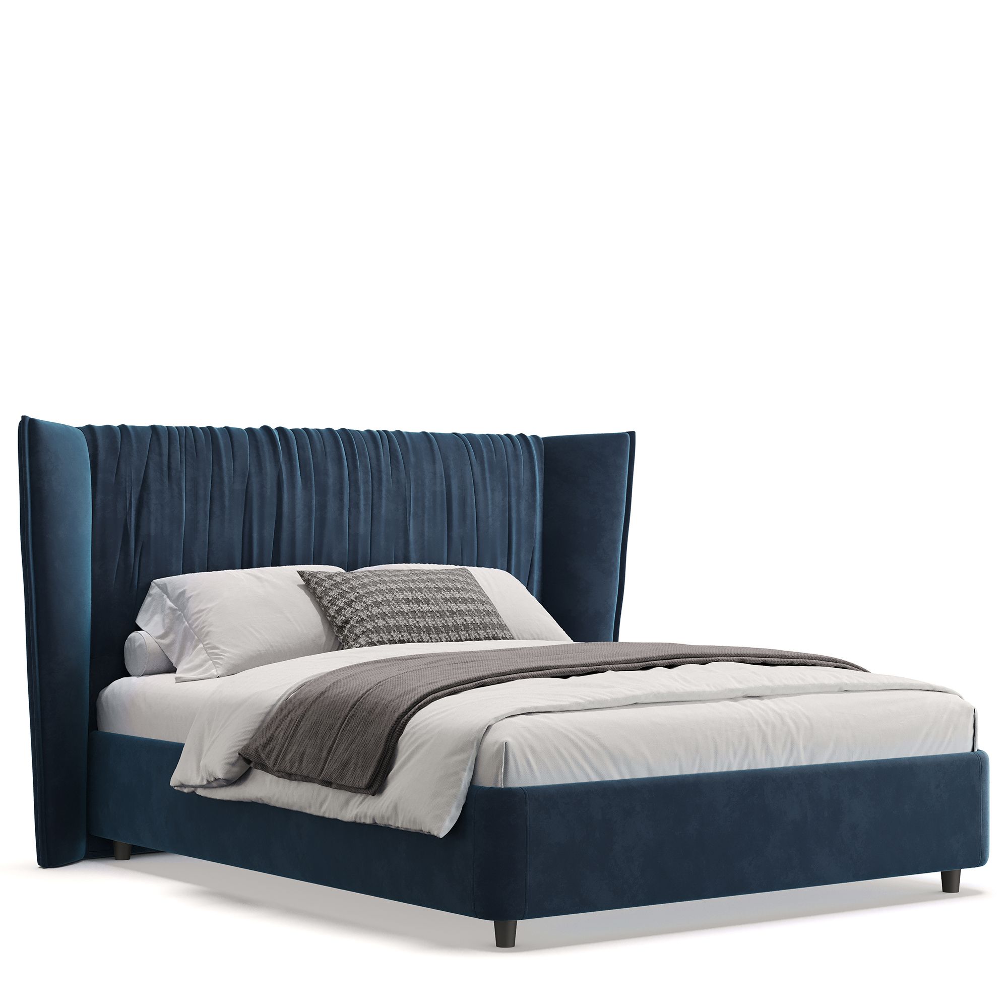 Кровать PLISSE в полностью мягком текстильном корпусе выполнена в отделке нежным микровелюром. Ее высокое драпированное изголовье словно «обнимает», образуя уютное пространство, защищенное от сквозняков. Скругленные углы кровати обеспечивают безопасность использования, а высокие ножки не создают препятствий при уборке с помощью робота-пылесоса. Модель оснащена надежным подъемным механизмом и вместительным ящиком для белья. Металлическое основание и ортопедическая решетка (каркас – металл) входят в комплектацию.