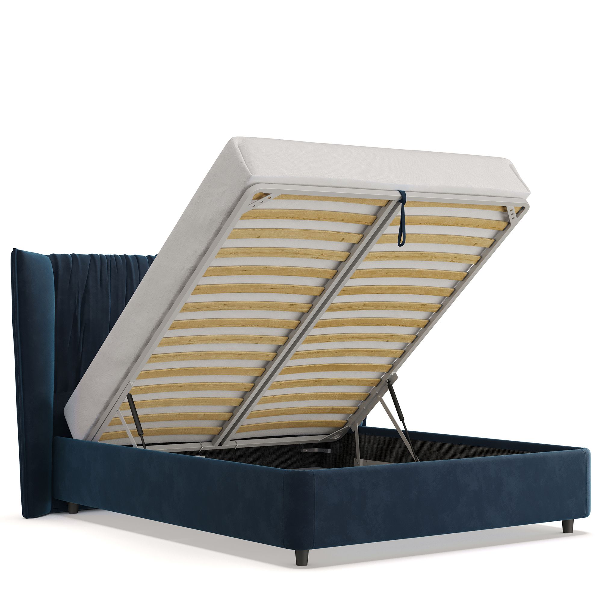 Вместительный короб внутри кровати подойдет для хранения подушек, белья и других вещей. В бельевом ящике нет перегородок – это позволяет использовать его, в том числе, для хранения длинных и крупногабаритных вещей.