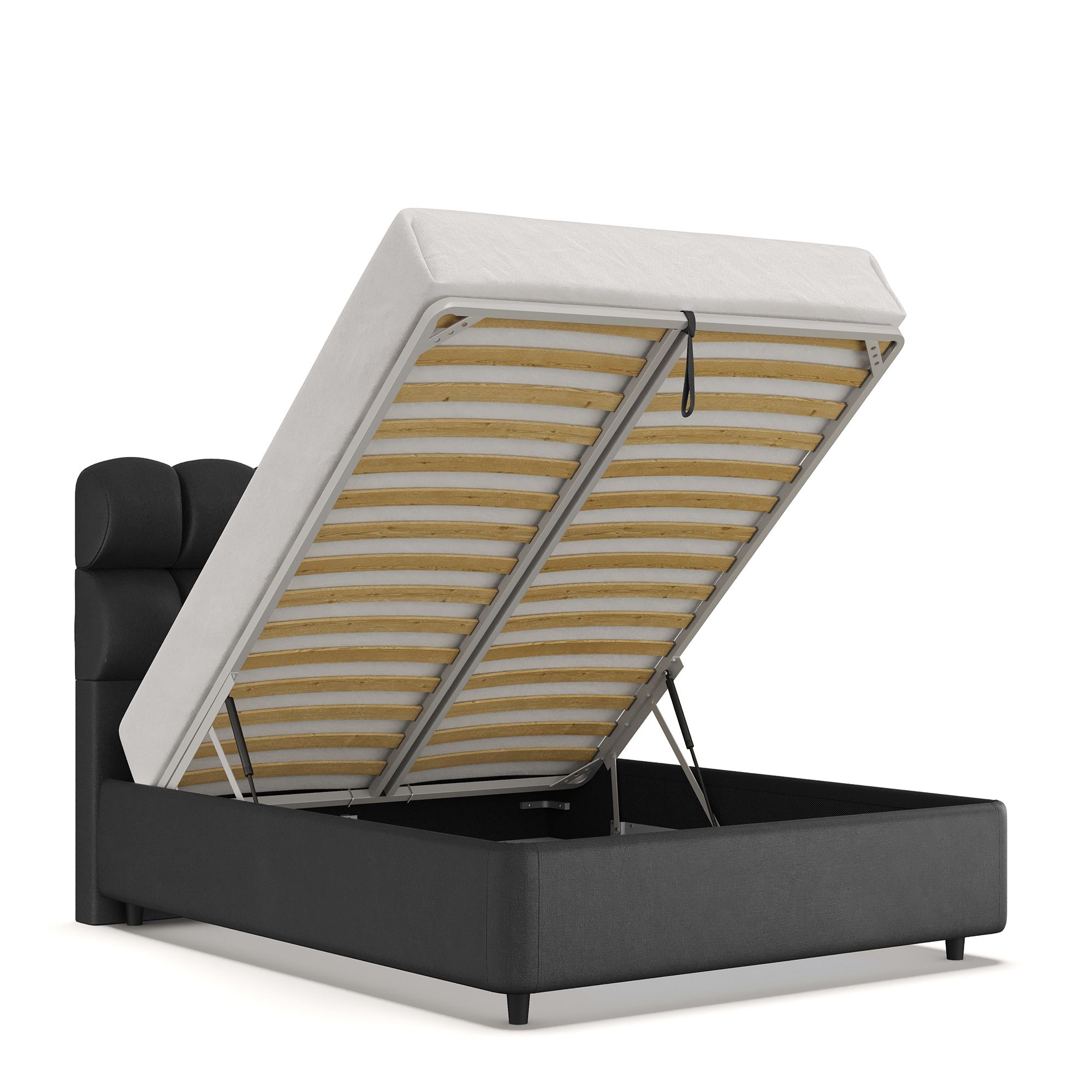 Вместительный короб внутри кровати подойдет для хранения подушек, белья и других вещей. В бельевом ящике нет перегородок – это позволяет использовать его, в том числе, для хранения длинных и крупногабаритных вещей.